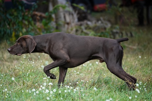ZB.Nr.: 0942/22, gewölft am 10.05.2022, Braun mit Brustfleck, D1, VJP 68 Pkt., HZP-187Pkt., VGP1-336 Pkt. ÜN (Nasengebrauch 4h), VStP(B)46P., AH, SJ, HN, sichtlaut HD-A1, OCD-frei, Übergangswirbel frei Formwert: sehr gut (SG3, Jugend), Stockmaß: 64 cm