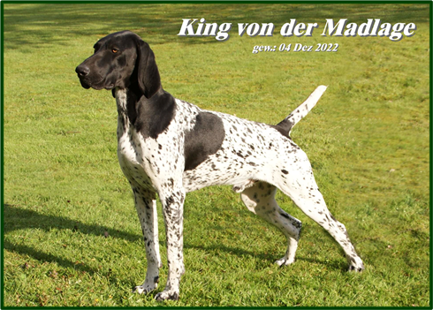 D1, S1 (Suchensieger), BP, HN, VBR, Btr, VGP 1 (343 Pkt) ÜF mit Totverweisen, IKP 1, SJ, FW: SG2, Stockmaß 66cm, Auge dunkel, HDA2 frei