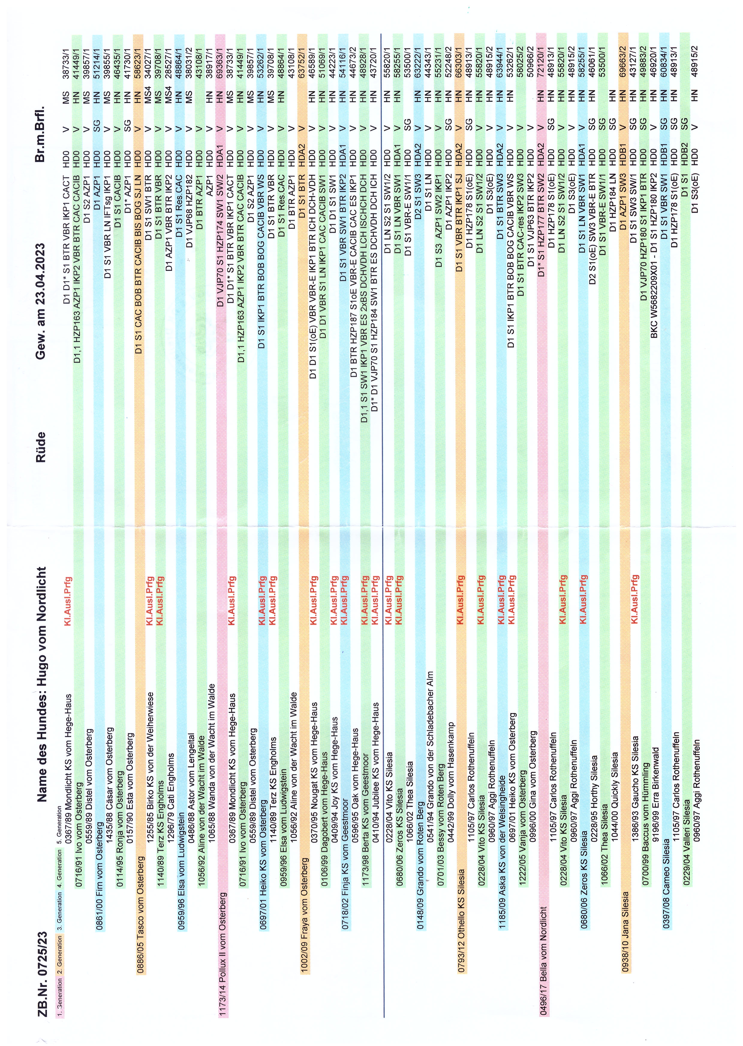 ZB.Nr.: 0942/22, gewölft am 10.05.2022, Braun mit Brustfleck, D1, VJP 68 Pkt., HZP-187Pkt., AZP1, VGP1-336 Pkt. ÜN (Nasengebrauch 4h), Sw I/, St 46 B, AH, SJ, HN, sichtlaut HD-A1, OCD-frei, Übergangswirbel frei, Formwert: SG3 Jugend, Stockmaß: 65 cm
