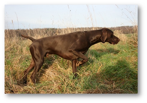 Ein ansprechender Typvoller Nachwuchsrüde mit maskulinem Kopf und bestehendem tiefdunklen Braun, Er stammt aus einem Leistungsstarken frühreifen Wurf mit hohen Formwerten. Seine Stärke zeigt er im Wasser mit ausgeprägtem Durchhaltewillen, sowie im Feld mit einer brillanten Nasenführung und Kopfhaltung und bei der Nachsuche im Wald. Er ist ein ruhiger verträglicher Jagdgefährte der im Jagdbetrieb viel Freude beschert.