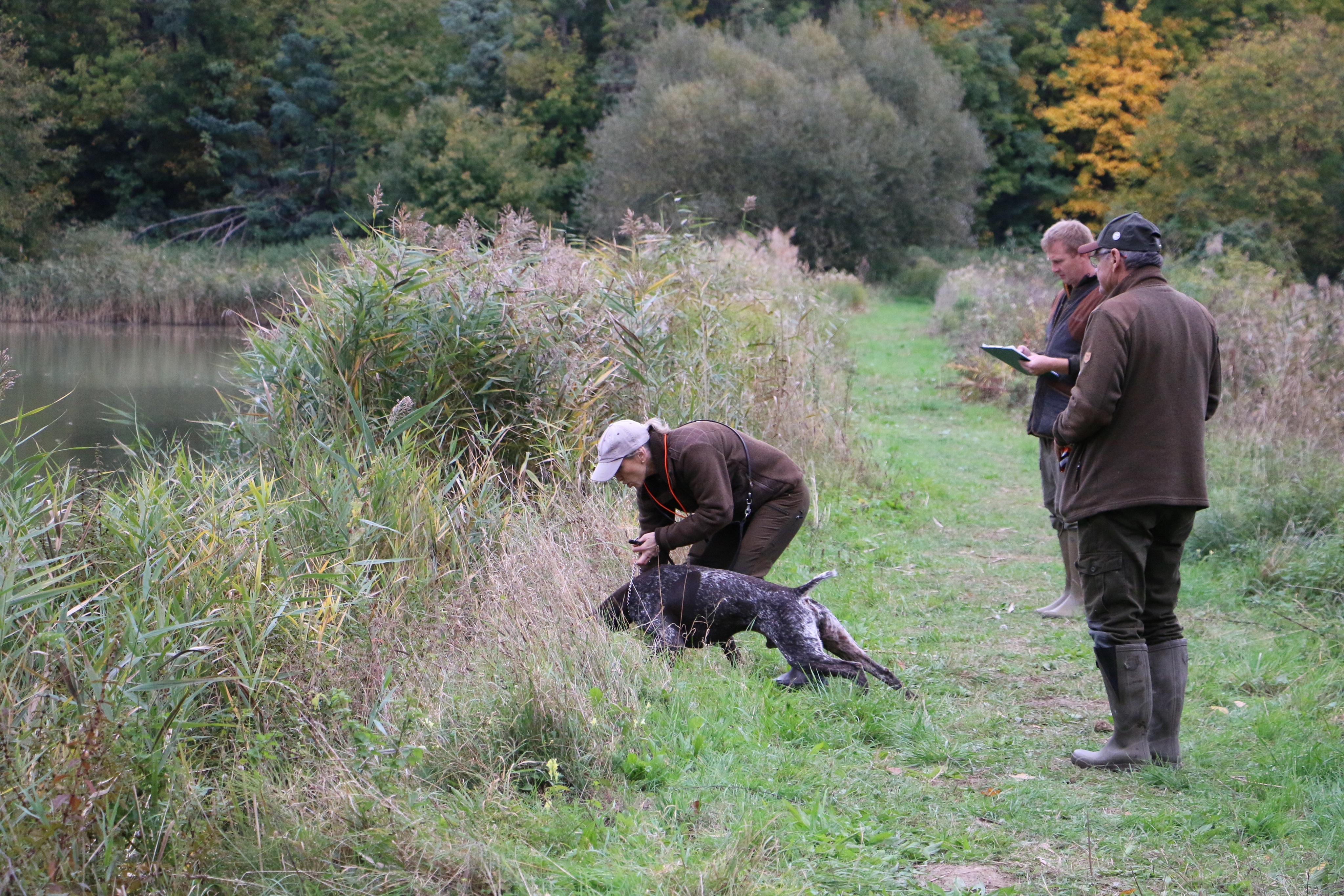 Rene Rudnick mit Nash vom Höllental konnte die Prüfung mit einem dritten Preis bestehen. Timm Gudehus mit Arvin vom Himmel Fallen zeigte die beste Wasserarbeit.