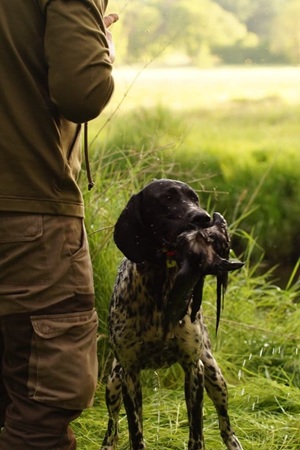 Im Jagdbetrieb ist er ein ruhiger, verlässlicher und verträglicher Jagdgefährte, der viel Freude bereitet – ebenso im Alltag. Er ist Haus gewohnt und fährt gerne Auto.