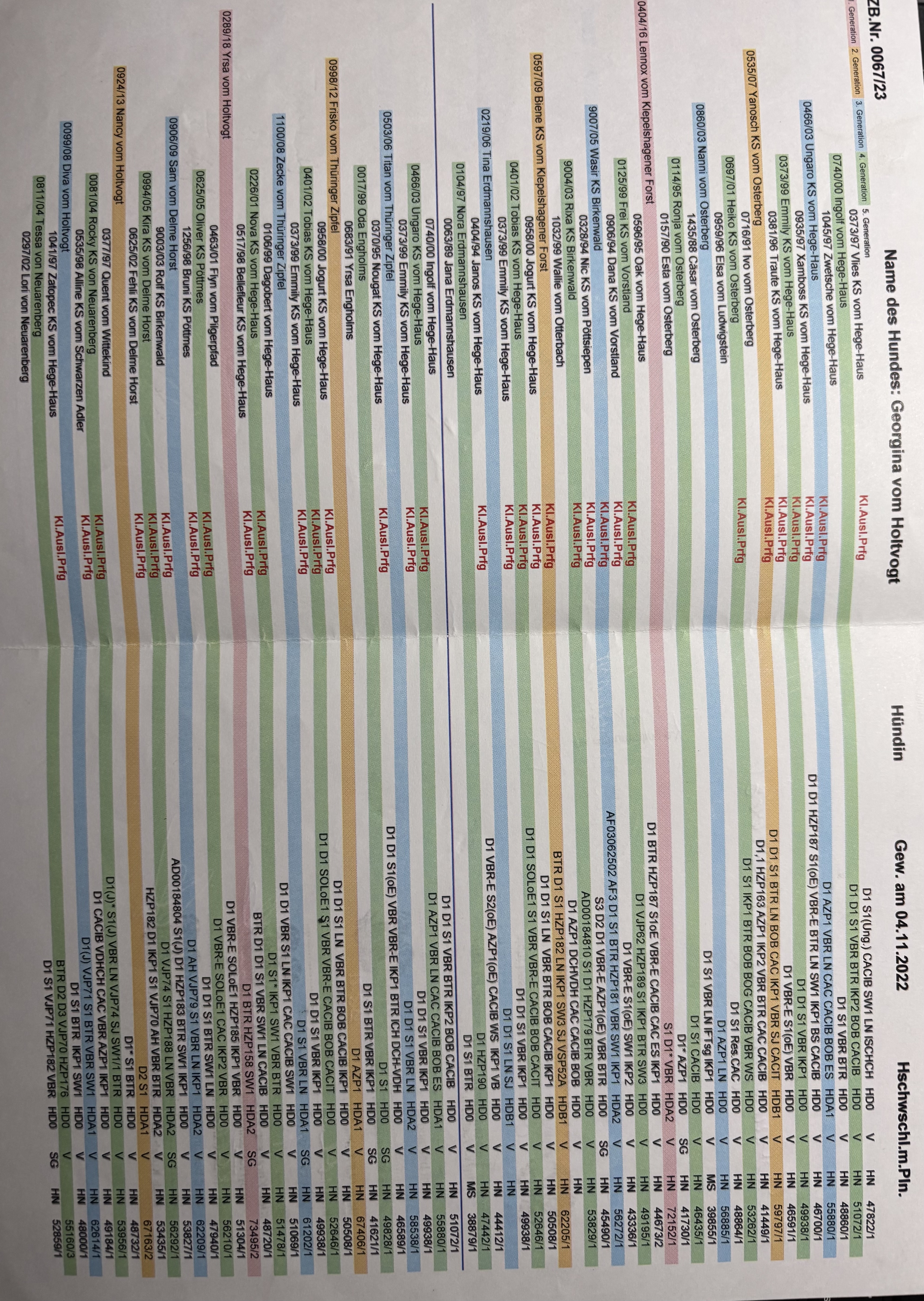 Aus: Georgina vom Holtvogt, gew. am 04.11.2022, ZB-Nr.:0067/23; Hschwschl., D1, VJP 70P., S1, VGP 2 (309 P.ÜF); S I; HD-und OCD frei; FW: V