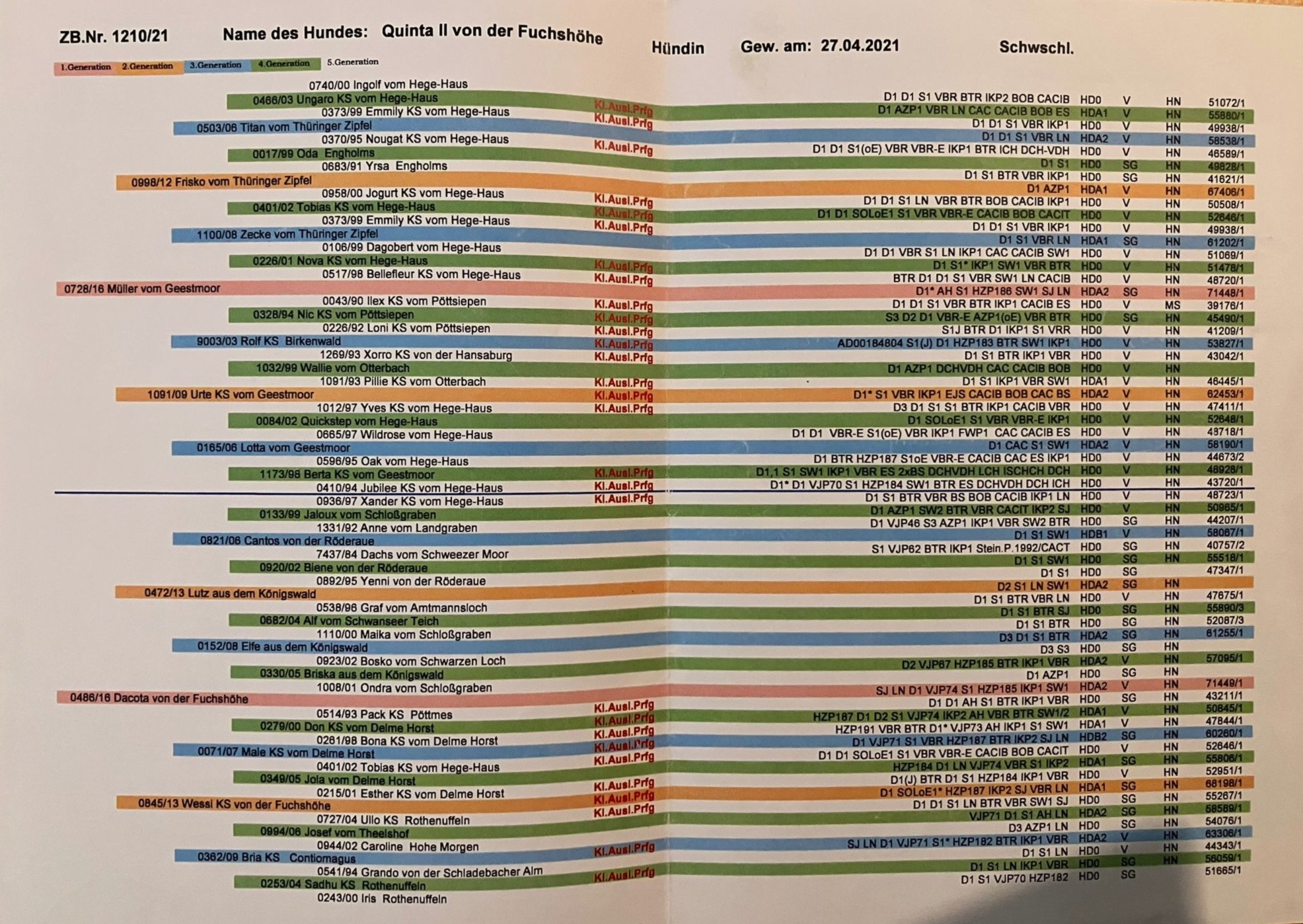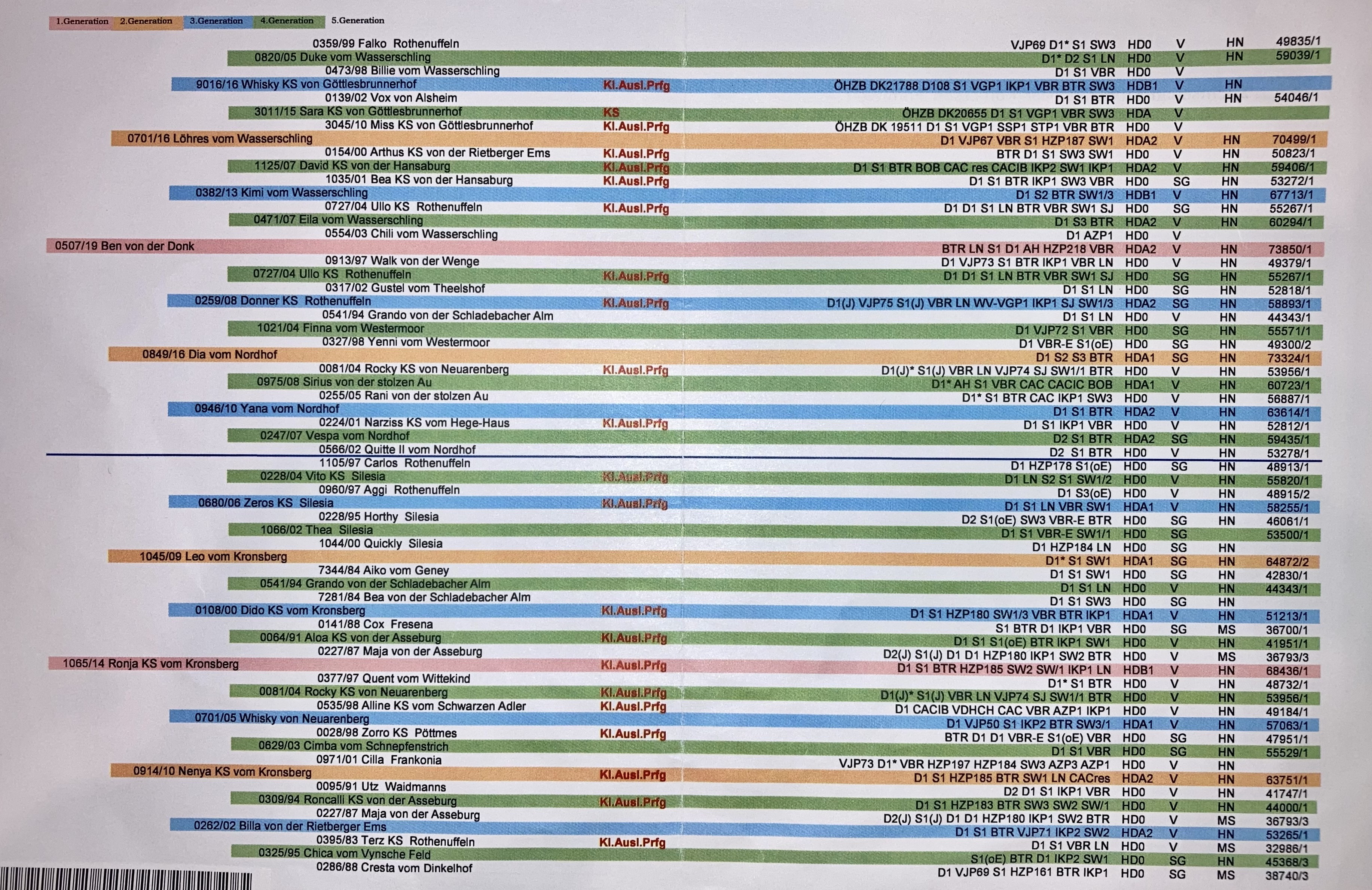 Vater: KS Xaverl vom Theelshof, ZB-Nr. 0776/18, Brschl.m.Pln., D1,S1,VGP1,LN,BTR,VBR,HN,Fw V, HD-A2, OCD-frei