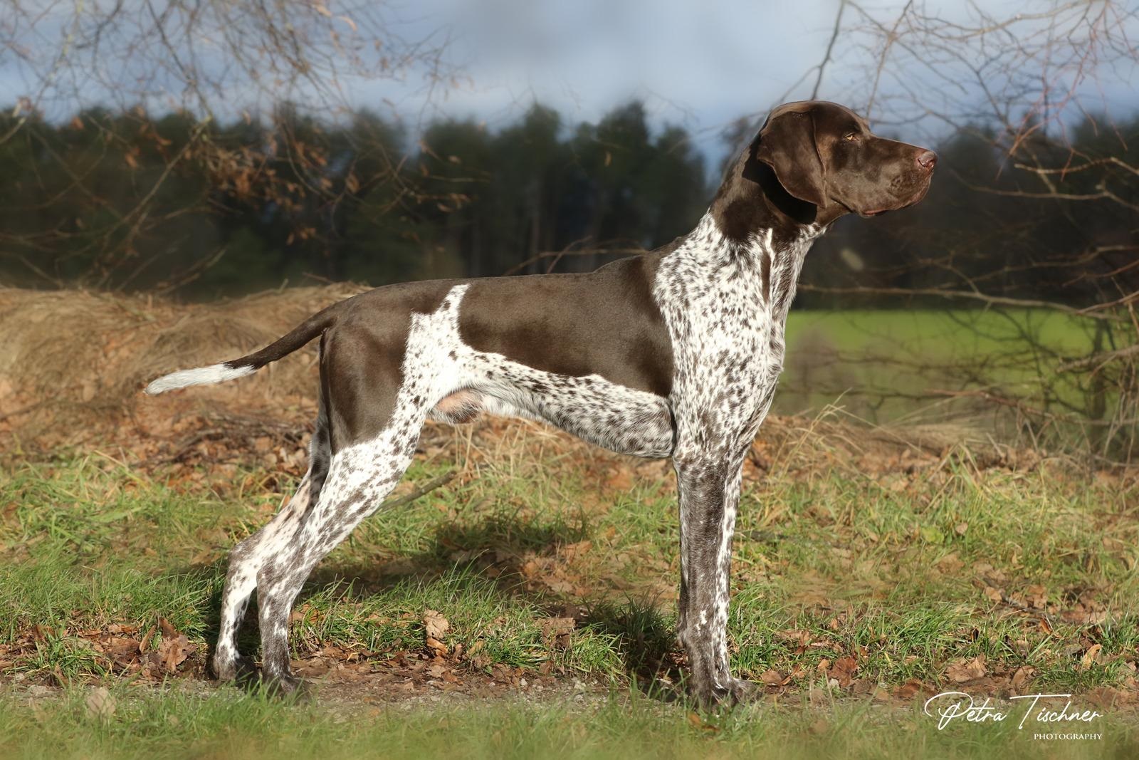 Pia ist eine sehr passionierte und elegante Hündin. Auf Zuchtschauen in den Jahren 2024 (Jugendklasse) und 2025 (Altersklasse) erhielt sie jeweils den Wanderpokal für den „Best of Breed“. Sie zeigt im Feld wunderschöne Vorstehbilder. In der Familie, insbesondere mit Kindern, ist sie sehr angenehm.