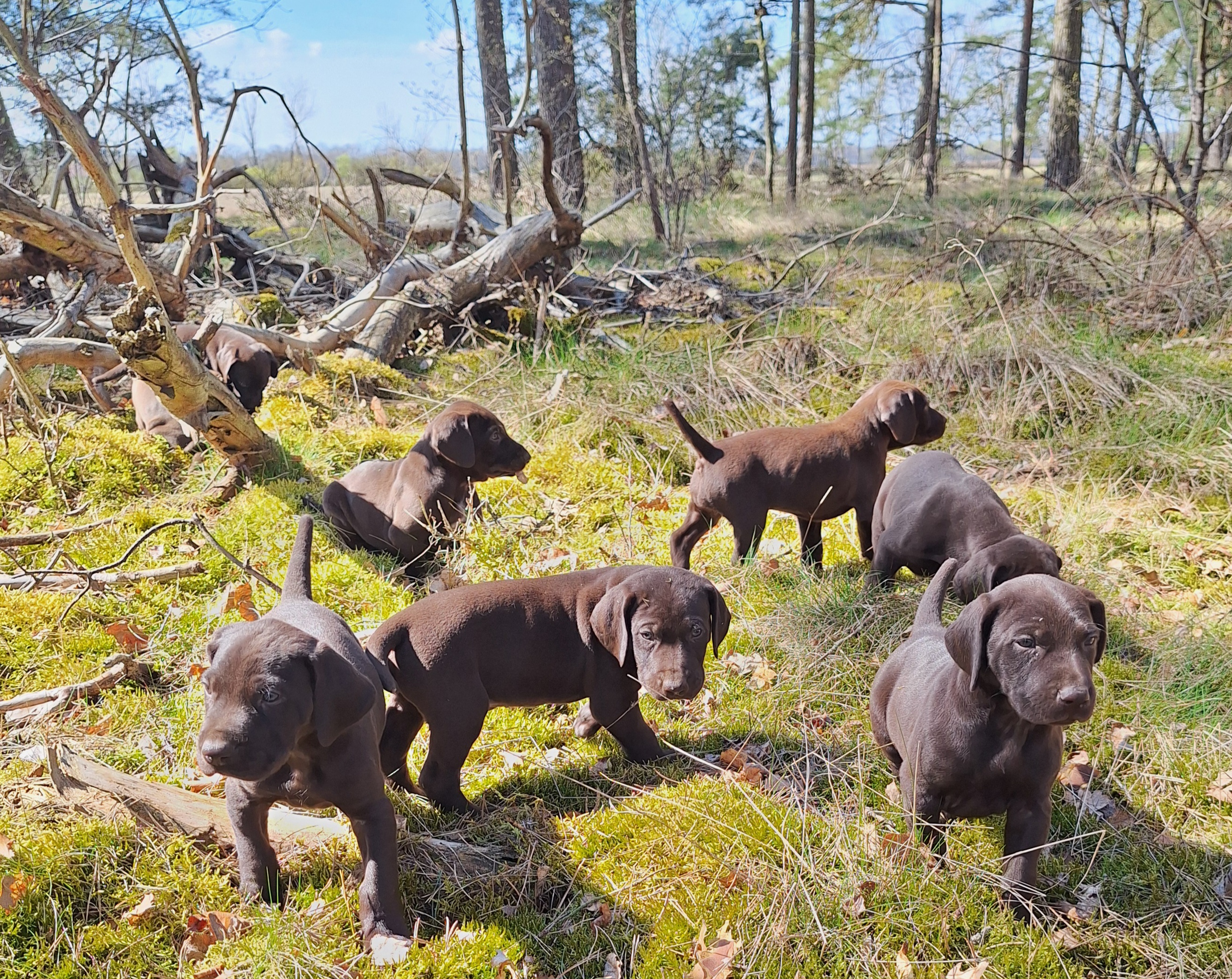 Im Zwinger vom Moosbach ist am 12.03.2026 der U-II Wurf mit 4/3 Braunschimmel und Braun (3/2 Braunschimmel und 1/1 Braun) gefallen, von denen noch einige in Jägerhände abzugeben sind.