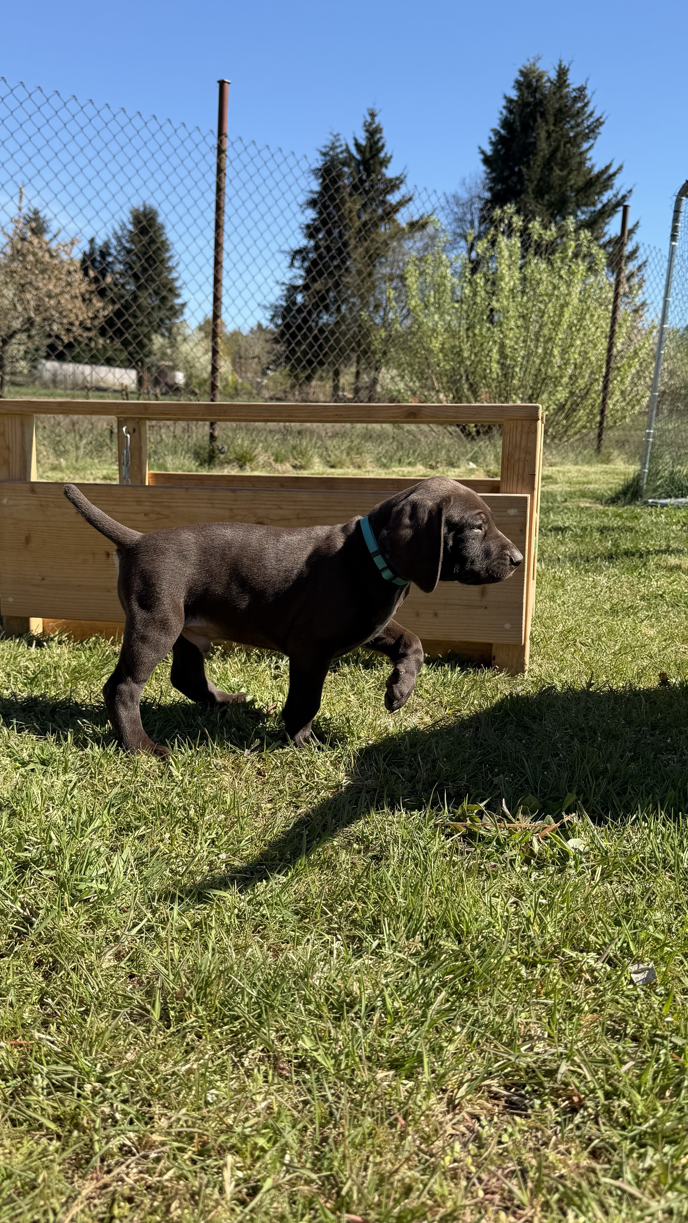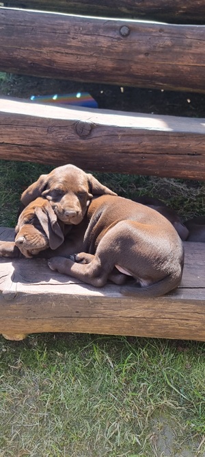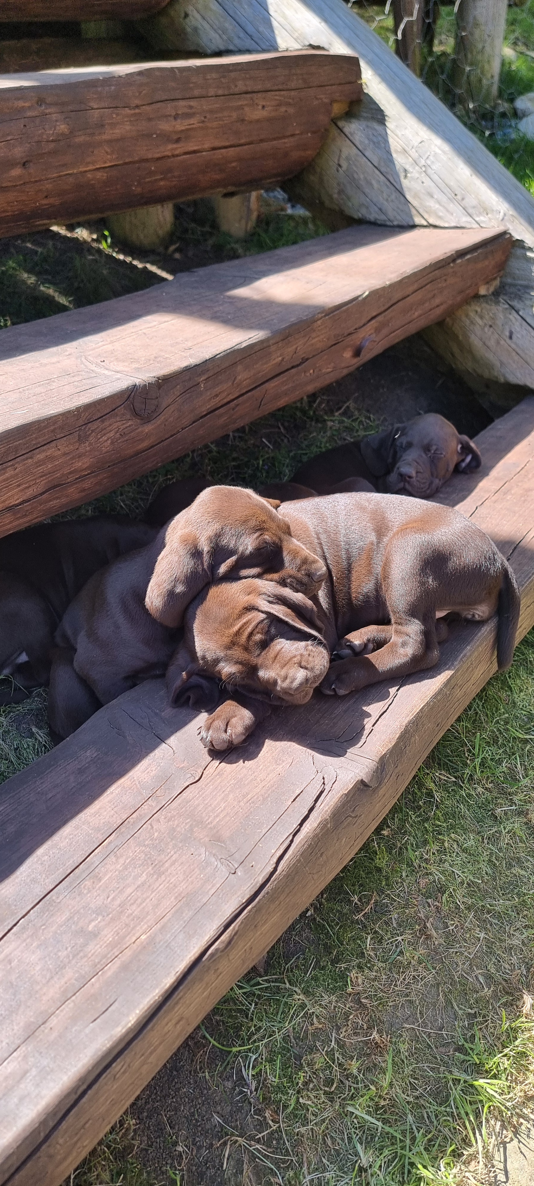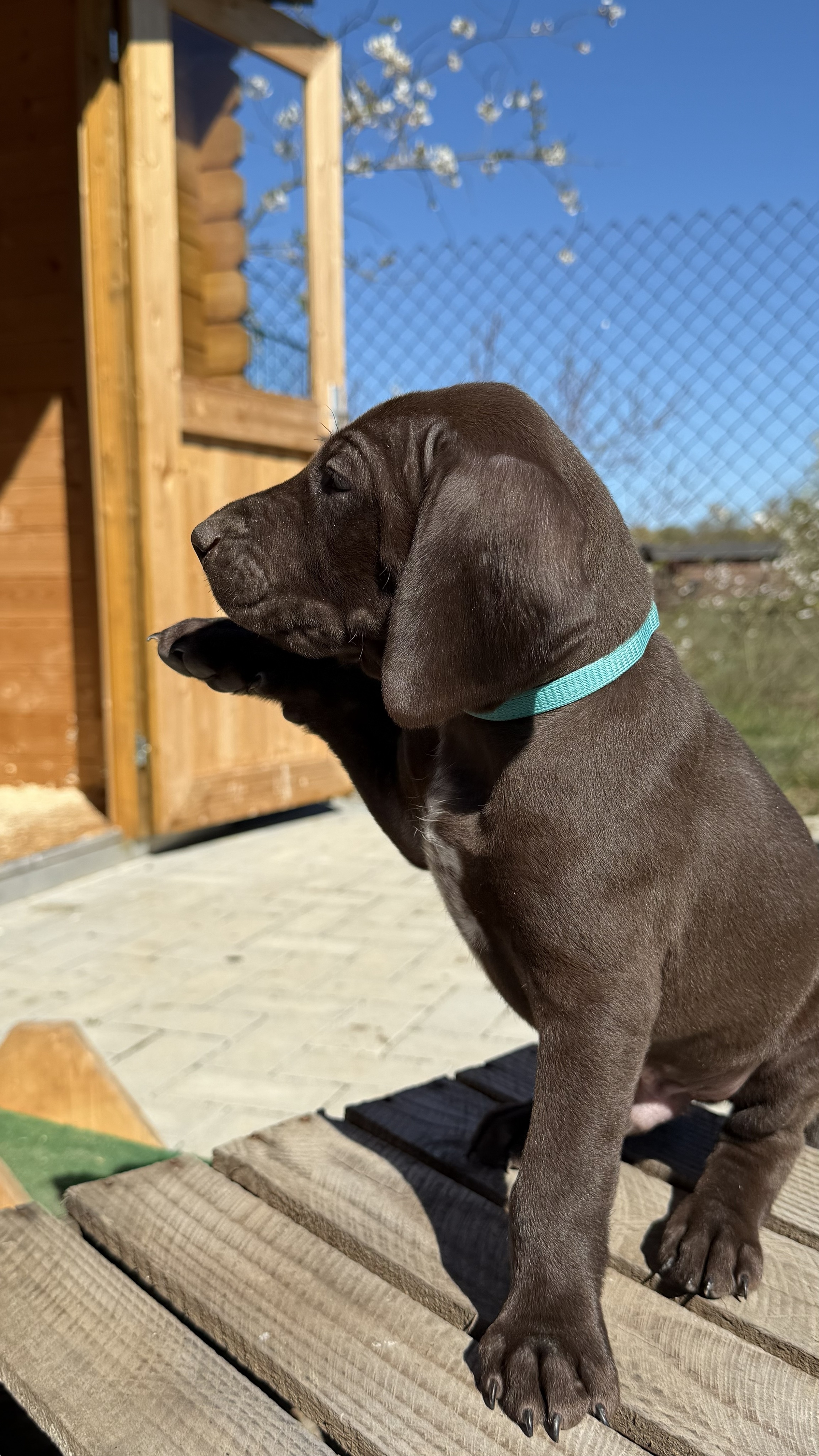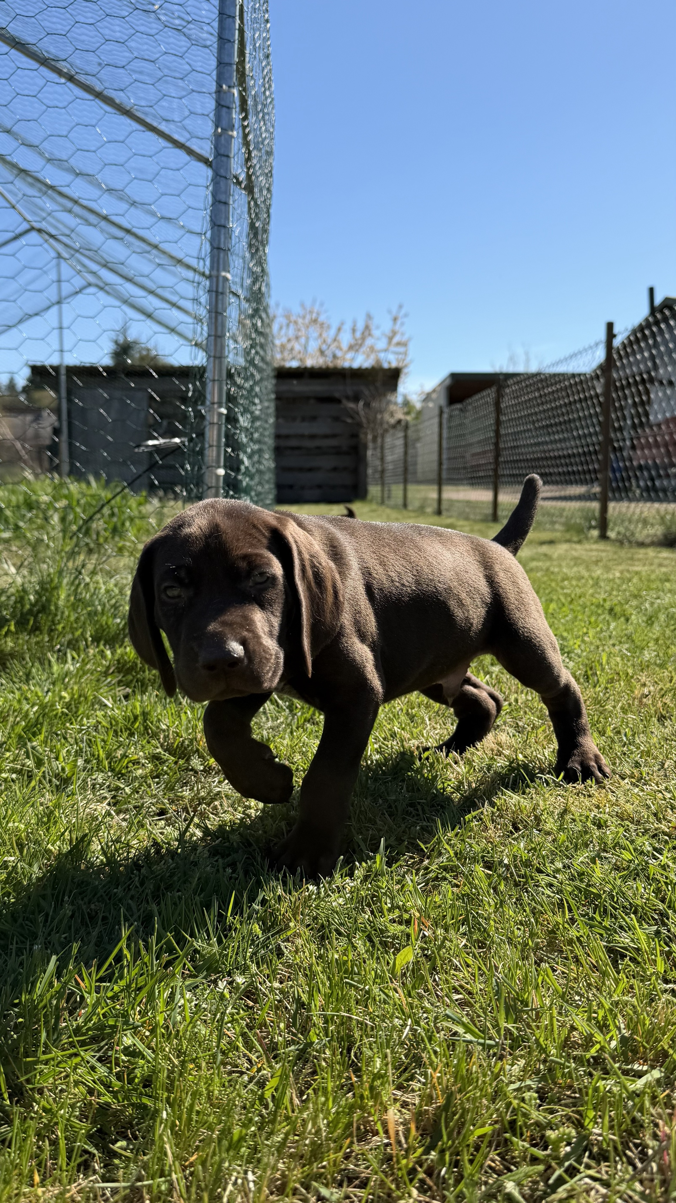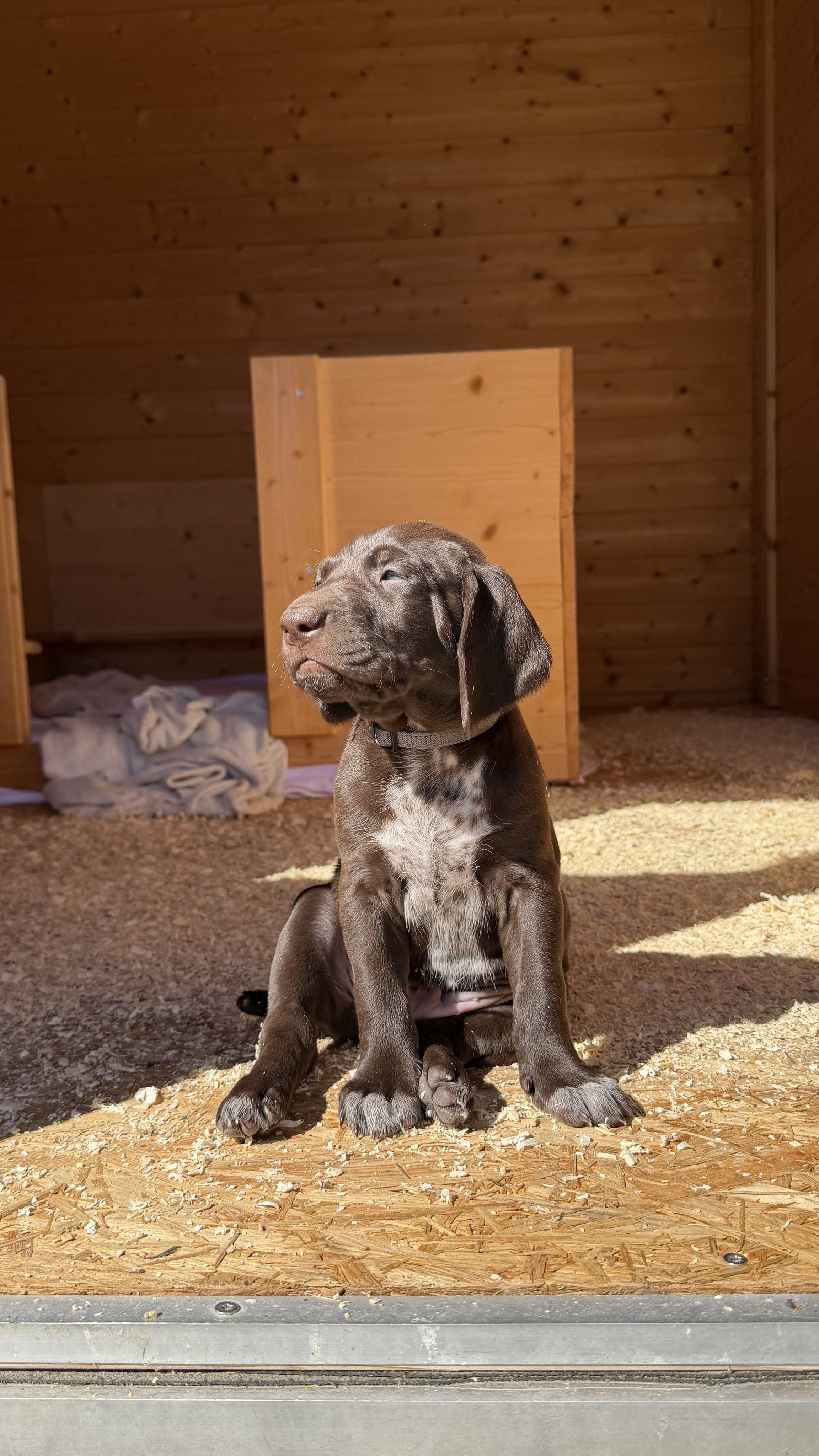 Am 18.03.2026 sind 3,4 braun und braunschimmel Welpen gewölft worden. Noch zwei braune Hündinnen frei.