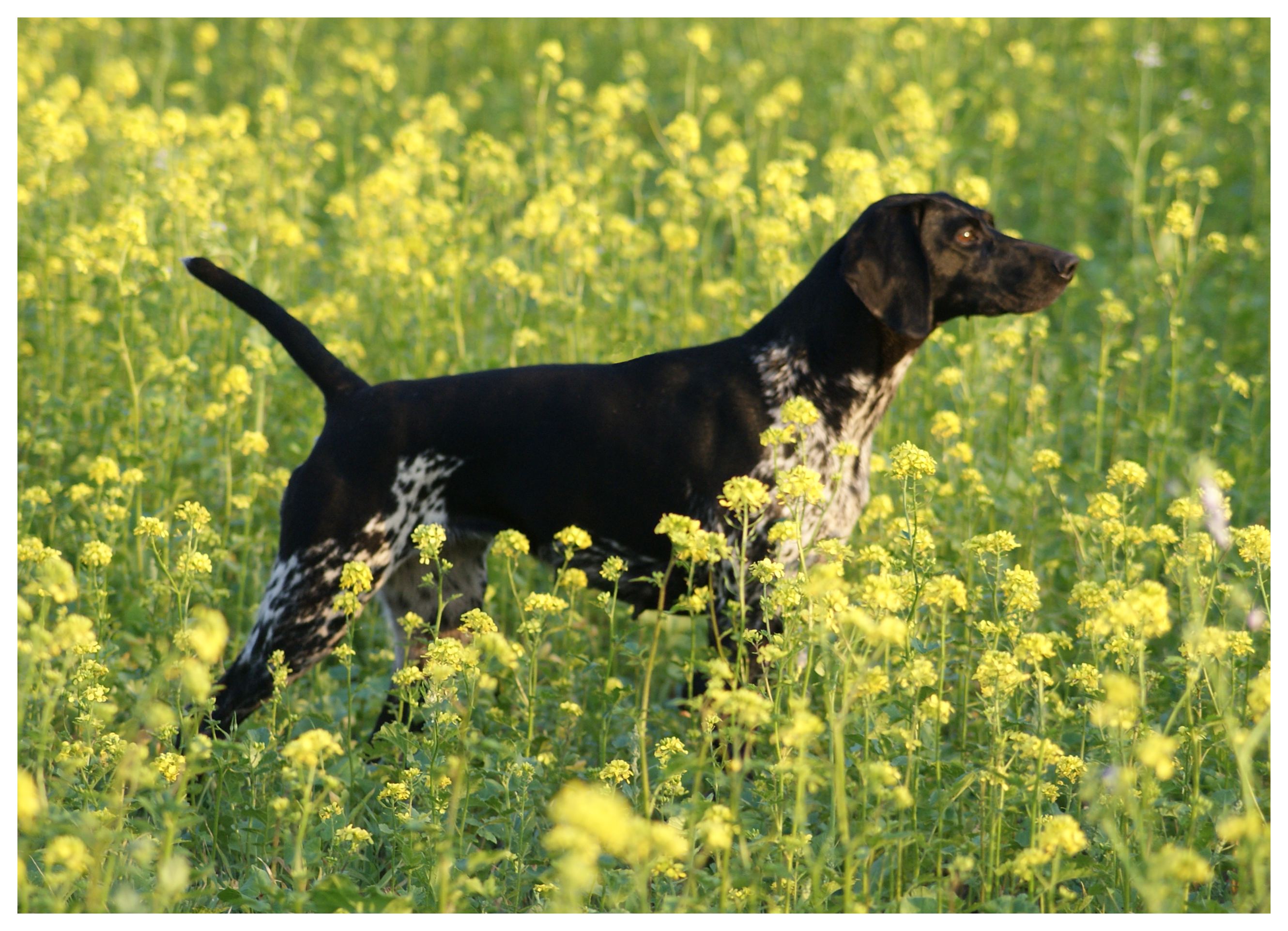 Beide Elterntiere haben sich im jagdlichen Einsatz als Allrounder bewährt; sie sind ebenso ruhige und führige Familienhunde; daher erwarten wir leistungsstarke, wesensfeste und im Formwert hochstehende Jagdhunde mit besten Anlagen für Feld, Wasser und Wald.