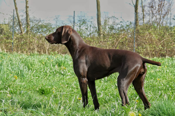 Aus: Chocolate KS von der Niederheide, D1, S1, VGP 1 (334 Punkte – Suchensieger), SW2 – Suchensieger, BTR, HN, Kurzhaarsieger HDA2, Formwert V1