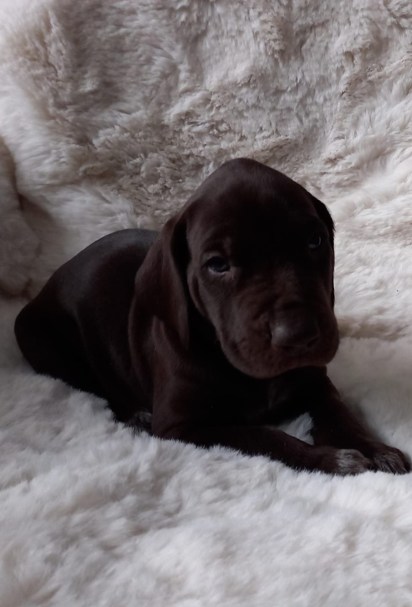 Am 18.12.2025 ist unser K II-Wurf mit 7,4 braunschimmel Welpen gefallen.