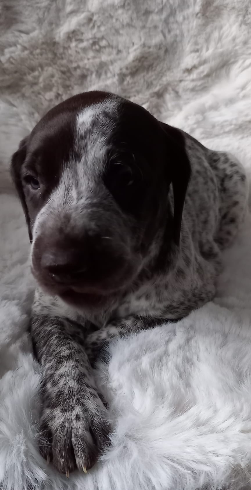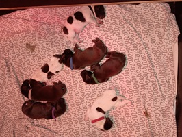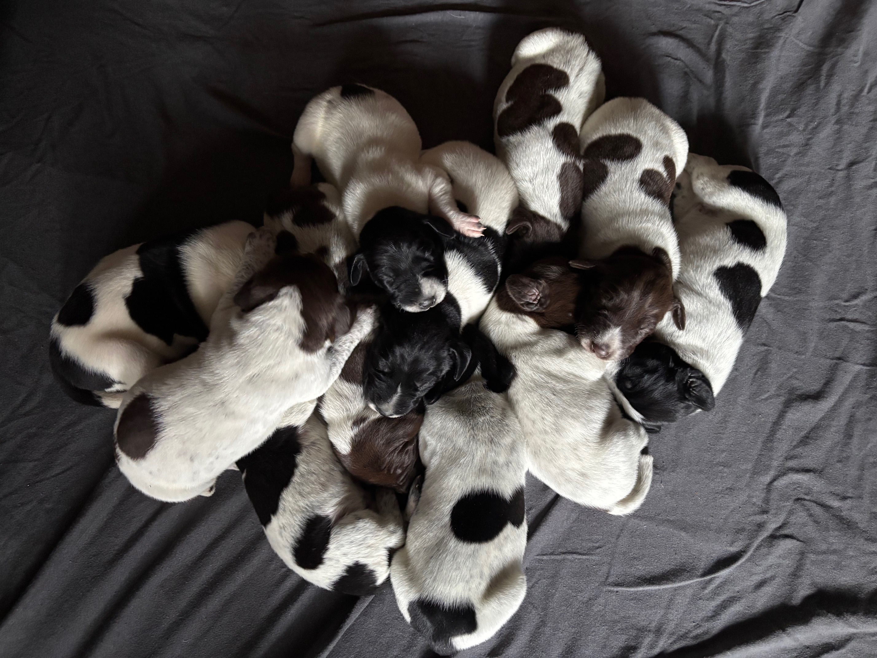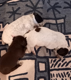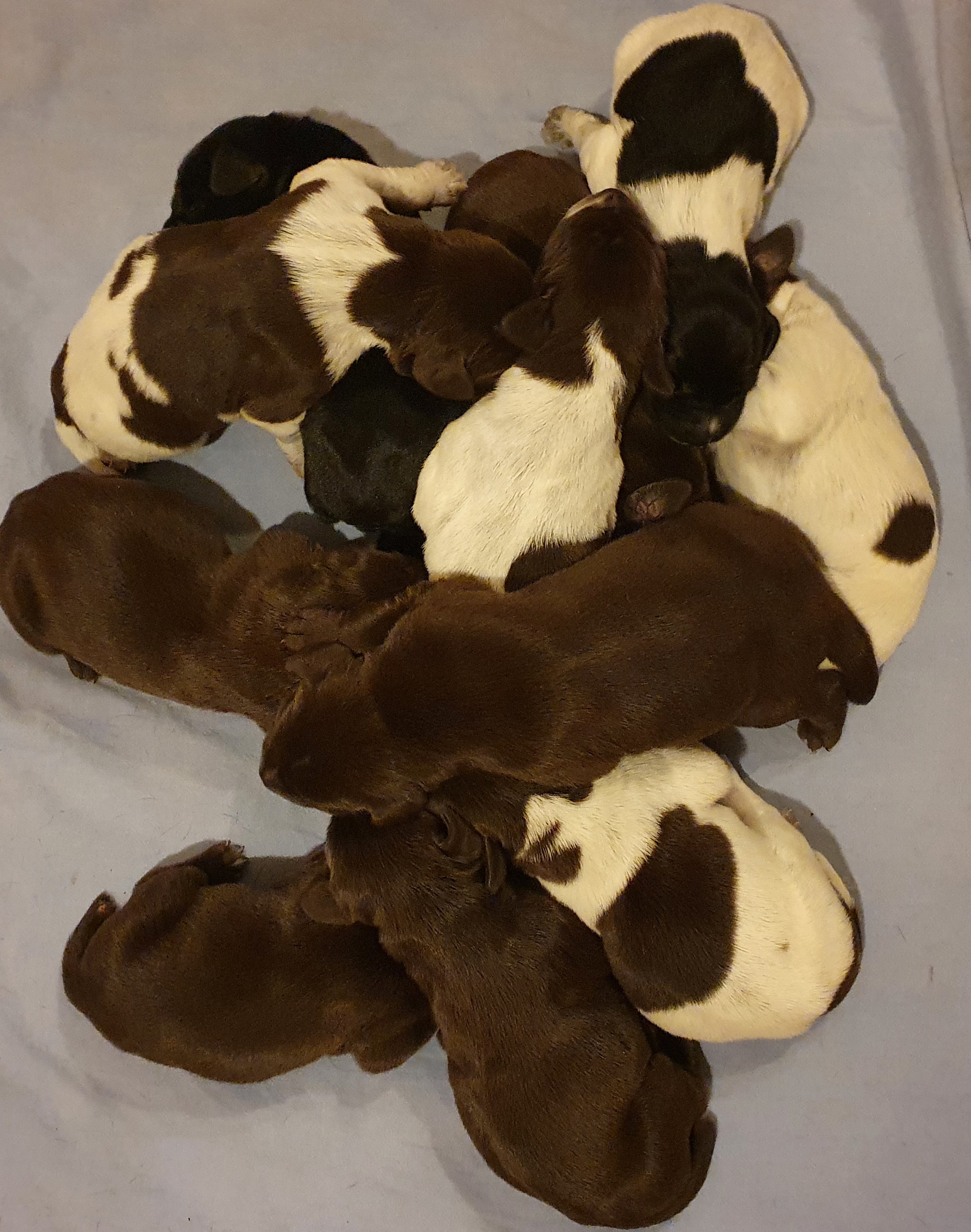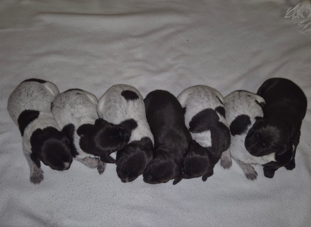 Am 12.12.25 ist unser Q-IV Wurf mit 3,5 Welpen gefallen, braun, hbrschl. und weiß.