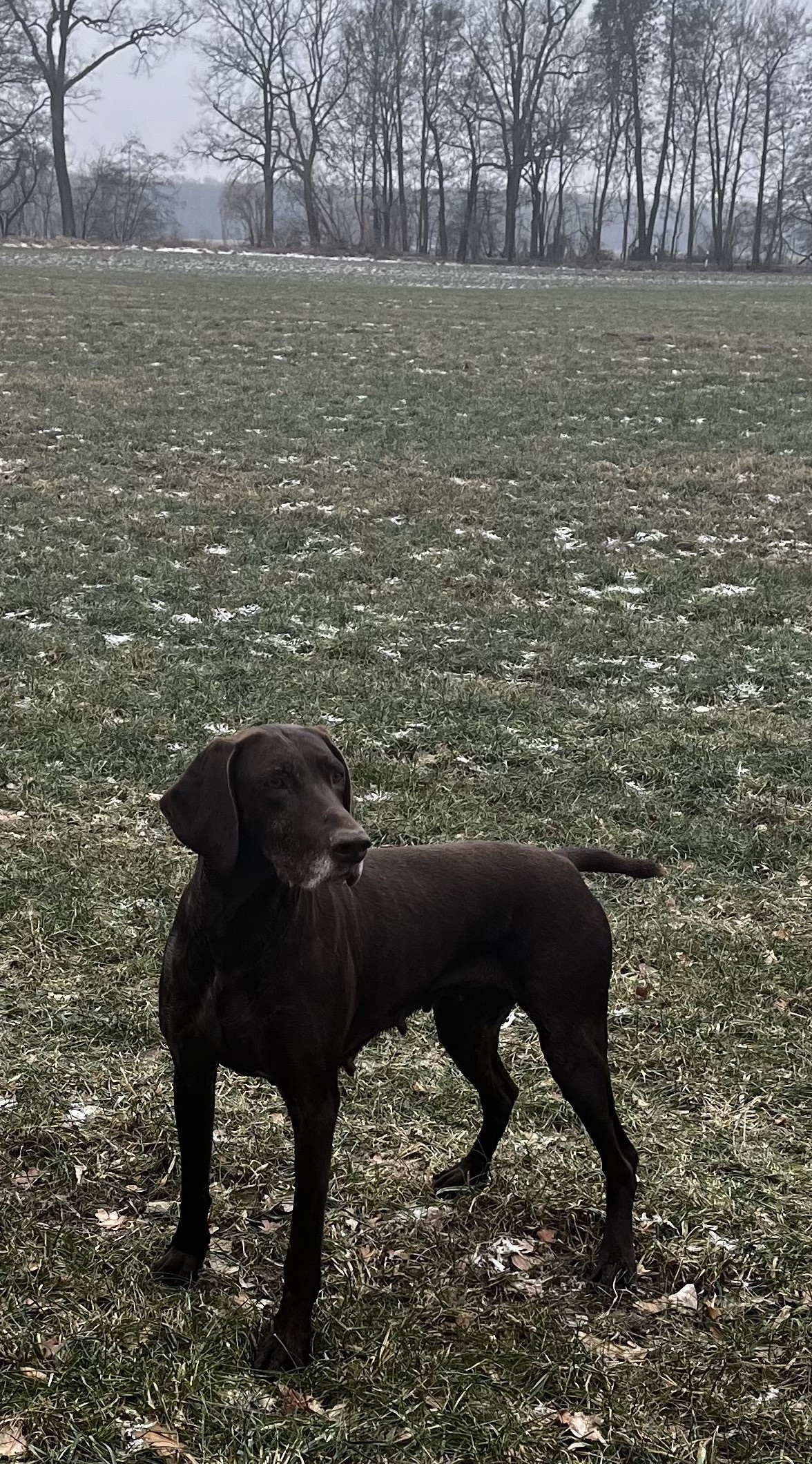 Diva ist eine bezaubernde und elegante Deutsche Kurzhaar-Hündin mit viel Leidenschaft und Energie, gepaart mit Kooperationsbereitschaft und Zielstrebigkeit. Sie ist exterieurgerecht mit korrekten weiblichen Attributen und Bewegungen. Diva ist 62 cm groß. Divas Feldsuche ist methodisch, bodendeckend und umfassend. Sie ist eine zuverlässige Vorstehhündin und apportiert korrekt. Sie jagt sowohl allein als auch mit ein oder zwei Personen sowie in der Gruppe mit anderen Hunden und vielen Personen, wie es in ihrer Heimat, der Prärie von South Dakota, erforderlich ist. Diva ist eine erfolgreiche Fährtenleserin und eignet sich auch hervorragend für die Enten- und Gänsejagd. Diva verkörpert alles, was ein DK ausmacht: Intelligenz, Schönheit, Ausdauer und ein ausgeglichenes Wesen.