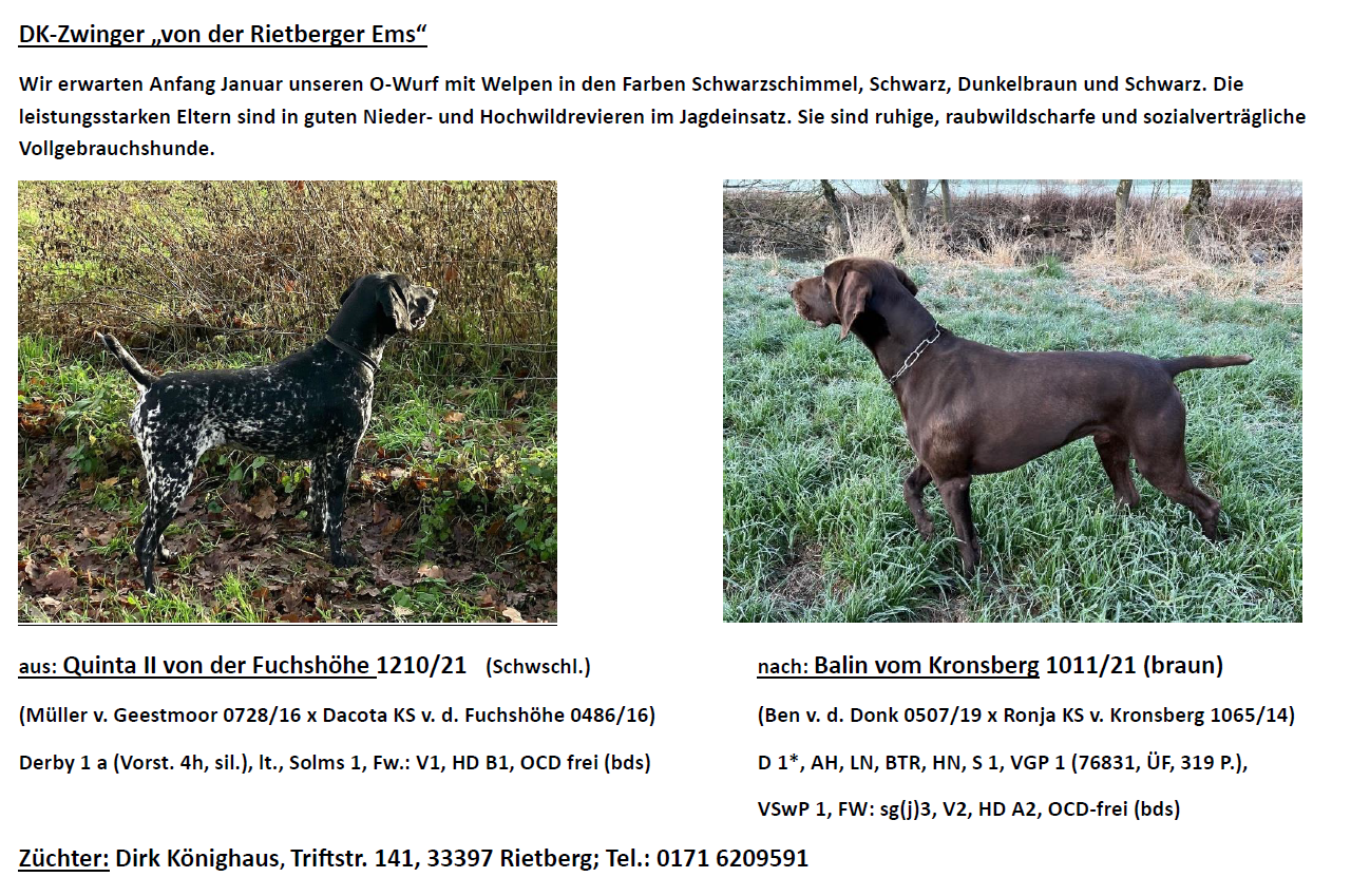 Info: Willi Werner Immken, 26169 Gehlenberg, Parkstr. 18, Tel: 0171-3707113 Email: immken@klubkurzhaar-voran.com