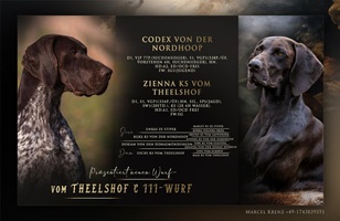 Vater: Codex von der Nordhoop 0667/24, D I, VJP 77 Pkt. (Spur 11 Pkt.), S I, VGP I (328 Pkt ÜF 4 h Vorstehen), HN, HD A2 / OCD frei / ED frei, Formwert: SG1 (J)