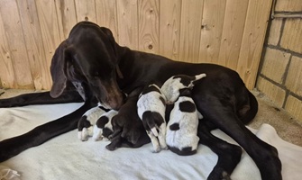 Der G IV Wurf mit 5,5 Welpen aus dem Zwinger „von Neuarenberg“ ist am 31.12.25 mit schwarzschimmel, braunschimmel, schwarzen und braunen, sowie hellschimmel Welpen geboren.