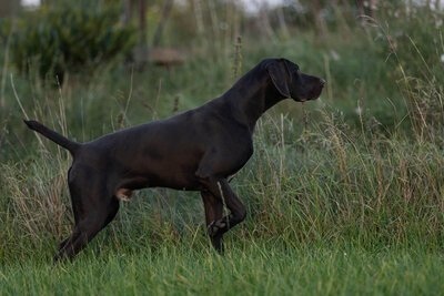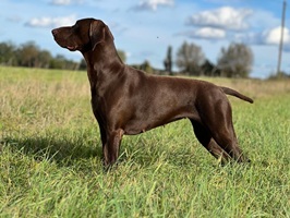 nach: Charly III von Neuarenberg ZBNr. 725/24 gew. 30.04.24 (E'Conan Iceman Karpaten Irbis x Vroni II KS von Neuarenberg), Derby 1. Preis spl, Solms 1. Preis St.m.E 4h und Vorstehen 4H, HZP 229 Punkte AH,VGP 1. Preis 332 P., HN, VBR, Btr, FW: Jugend sg1 und AK V5 Größe: 65 cm, HD-Frei A1 OCD- Frei,, Übergangswirbel frei; Untersuchung: auf Willebrand Genotyp N/N,, PCR/JEB und DNA Chary III ist ein ansprechender typvoller Nachwuchsrüde mit maskulinem Kopf und bestehendem tiefdunklen Braun, Er stammt aus einem Leistungsstarken frühreifen Wurf mit hohen Formwerten. Seine Stärke zeigt er im Wasser mit ausgeprägtem Durchhaltewillen, sowie im Feld mit einer brillanten Nasenführung und Kopfhaltung und bei der Nachsuche im Wald. Er ist ein ruhiger verträglicher Jagdgefährte der im Jagdbetrieb viel Freude beschert.