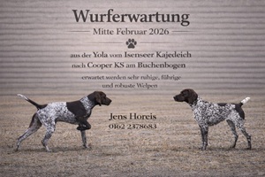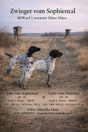 Aus Fiebi KS von der Schoorwisch, gew. am 23.12.2020, ZB-Nr.: 0446/21, D1, S1*, VGP1 344Pkt. ÜF Bringselverweiser, SWIII, HN, LN, SJ, Kurzhaarsieger 2024, HD-A2, OCD frei, FW SG