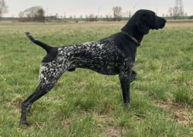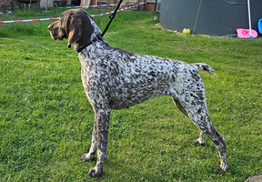 Nach Bandit vom Rimpaustein, Zb.Nr. 0585/23, Gew. am 30.03.2023, Brschl.m.Pln., D1 (4h Vorstehen), S1 (4h Vorstehen), VGP1 (349 Pkt. Totverbeller), sichtlaut, Saujager, BTR, HN, HD A2, OCD-frei, Fw. JK SG