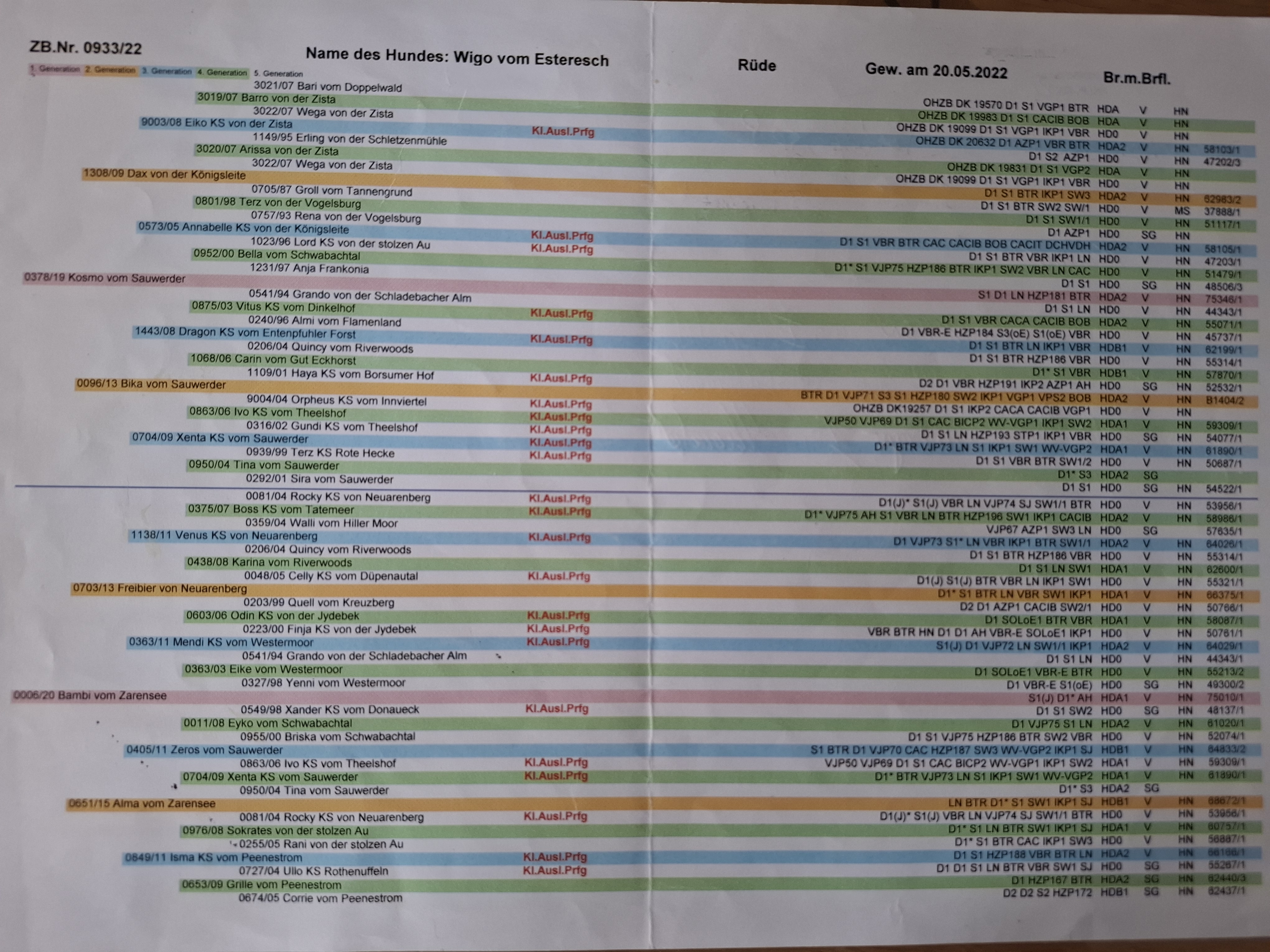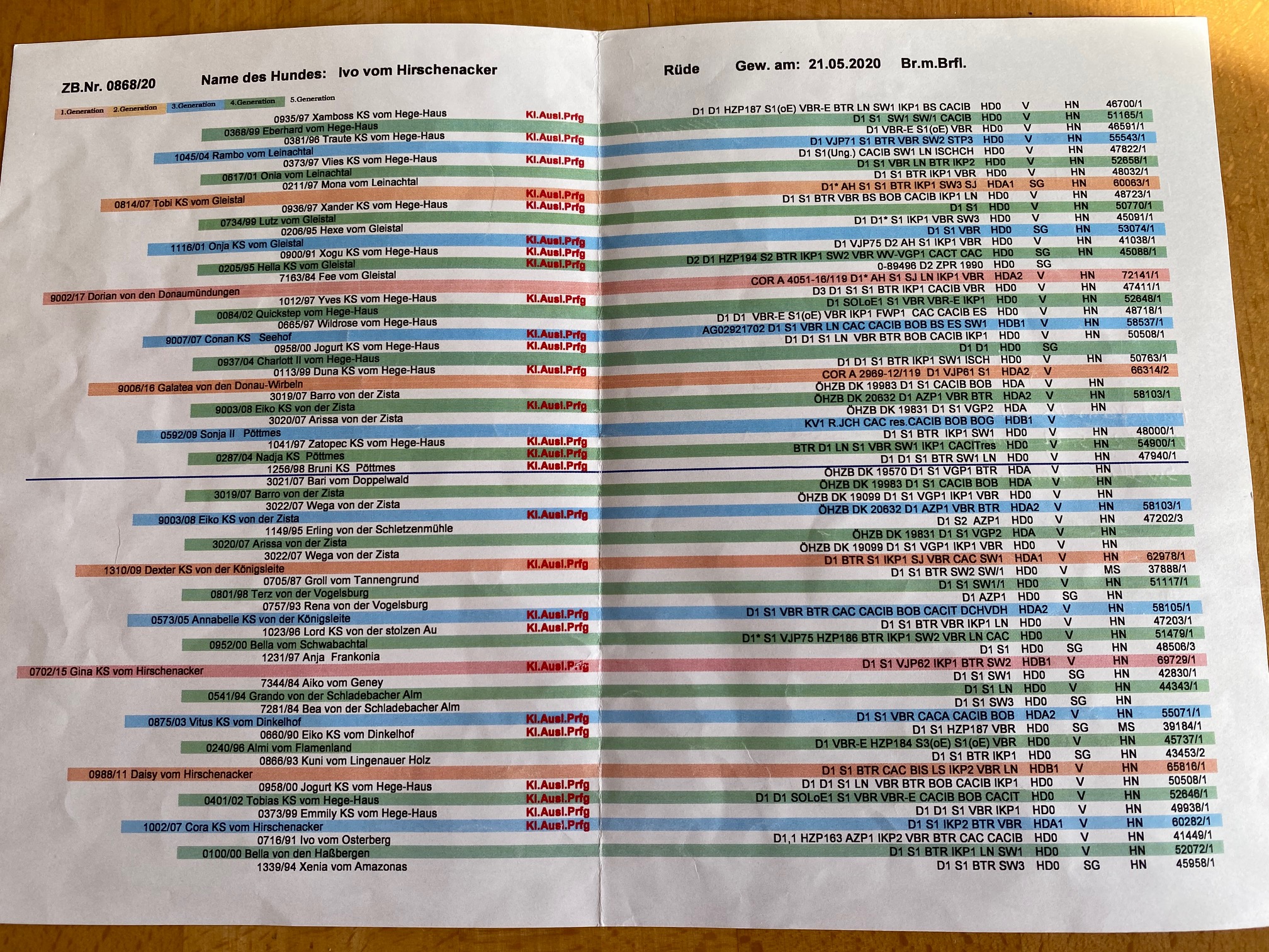 Zuchtbuchnummer 868/20 gew. 21.05.2020, D1, S1, HN, VGP1a, SJ, BTR, Sw3, HD B2, KS, Fw: V, Stockmaß 66cm