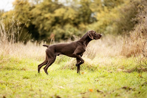 ZBNr. 725/24 gew. 30.04.24, Derby 1. Preis spl, Solms 1. Preis St.m.E 4h und Vorstehen 4H, HZP 229 Punkte AH,VGP 1. Preis 332 P., HN, VBR, Btr, FW: Jugend sg1 und AK V5 Größe: 65 cm, HD-Frei A1 OCD- Frei,, Übergangswirbel frei; Untersuchung: auf Willebrand Genotyp N/N,, PCR/JEB und DNA