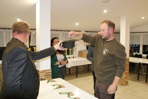 Rene Rudnick mit Nash vom Höllental konnte die Prüfung mit einem dritten Preis bestehen. Timm Gudehus mit Arvin vom Himmel Fallen zeigte die beste Wasserarbeit.