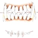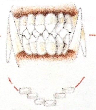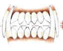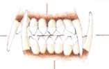 - Die Krone des Unterkieferfangzahns (Caninus) passt genau in den Raum zwischen dem dritten Schneidezahn (Incisivus) und Caninus des Oberkiefers, ohne sie zu berühren.