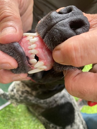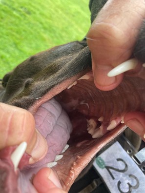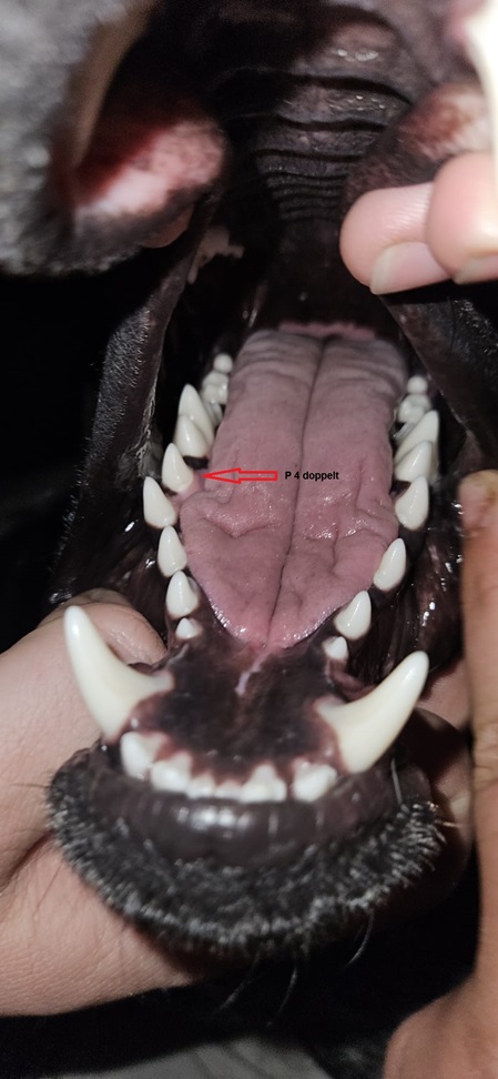 Sollten bei einem Hund Probleme beim Gebiss auftreten (Bruch eines Fangzahnes, Absplitterungen, Entfernungen von Zähnen etc.), so ist vor dem Gang zum Tierarzt, es unbedingt erforderlich, dass Sie vorher Kontakt mit einem Spezialzuchtrichter/ Formwertrichter aufnehmen. Nur dieser ist berechtigt Aussagen über das korrekte Gebiss und den aktuellen Zustand zu machen. Atteste von Tierärzten müssen im Nachgang angefertigt werden!