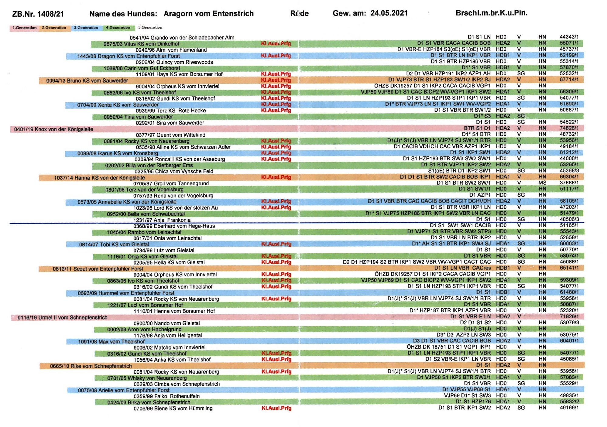 ZB.Nr. 1408/21, gew. am 24.05.2021, Brschl.m.br.K.u.Pln., D1 u. S1 (jeweils Suchensieger), HN, Btr, SJ, VswP-20h 1.P., VGP1 (336 Pkt., Suchensieger), LN (Sichtlaut), HD-frei A2, Formwert SG.