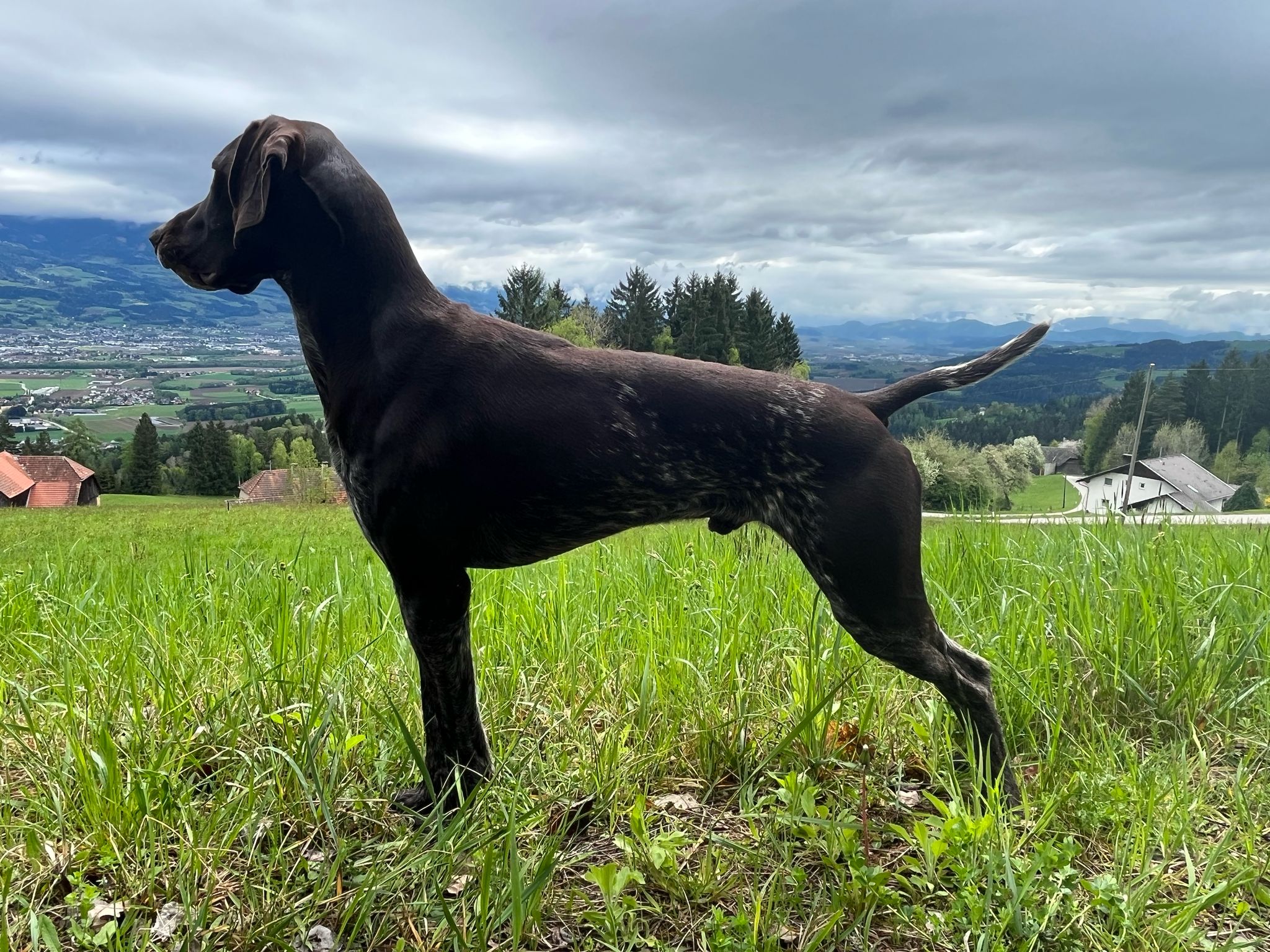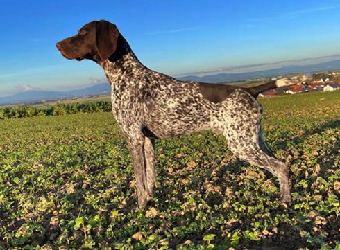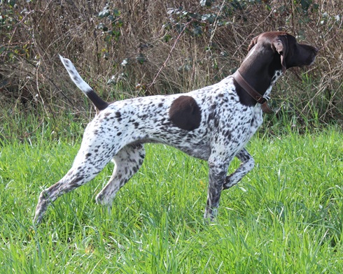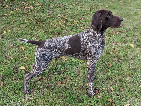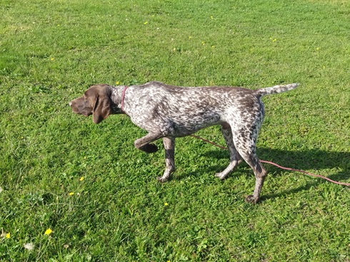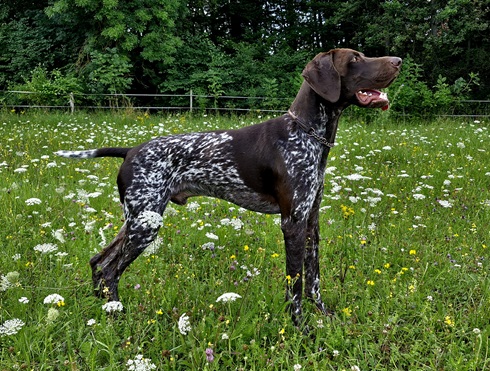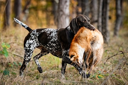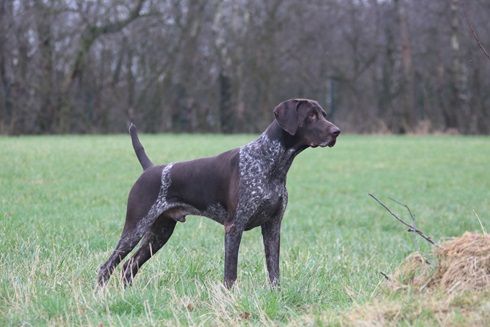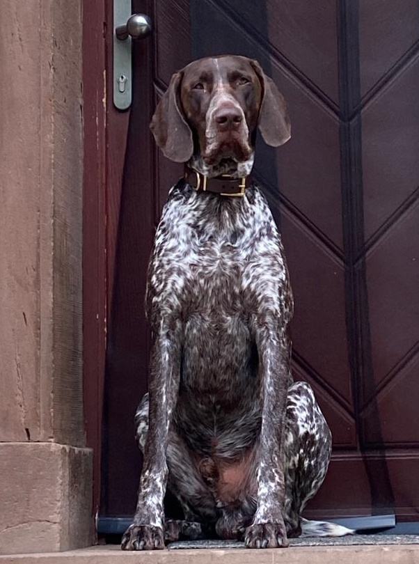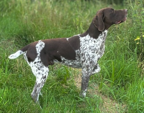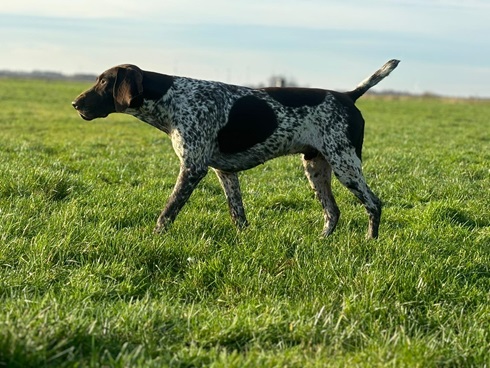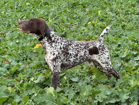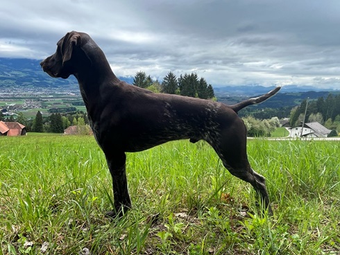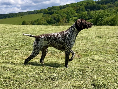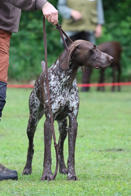 ZB-Nr: 0724/23, gewölft am 23.04.2023 Braunschimmel D1, VJP-74P., HZP 178. Pkt., VGP 1- 336 Pkt.- ÜN- Nasengebrauch, Vorstehen, Manieren u. Nachziehen am Wild, Stöbern ohne Ente im deckungsreichen Gewässer 4h, VStP 56 Pkt. (B), LN, Btr, SJHN, spurlautHD- A2, OCD- frei, Übergangswirbel freiFormwert: V2 Gebrauchshundeklasse, Res. Anw.Dt.Ch.mittleres AugeStockmaß: 67 cm