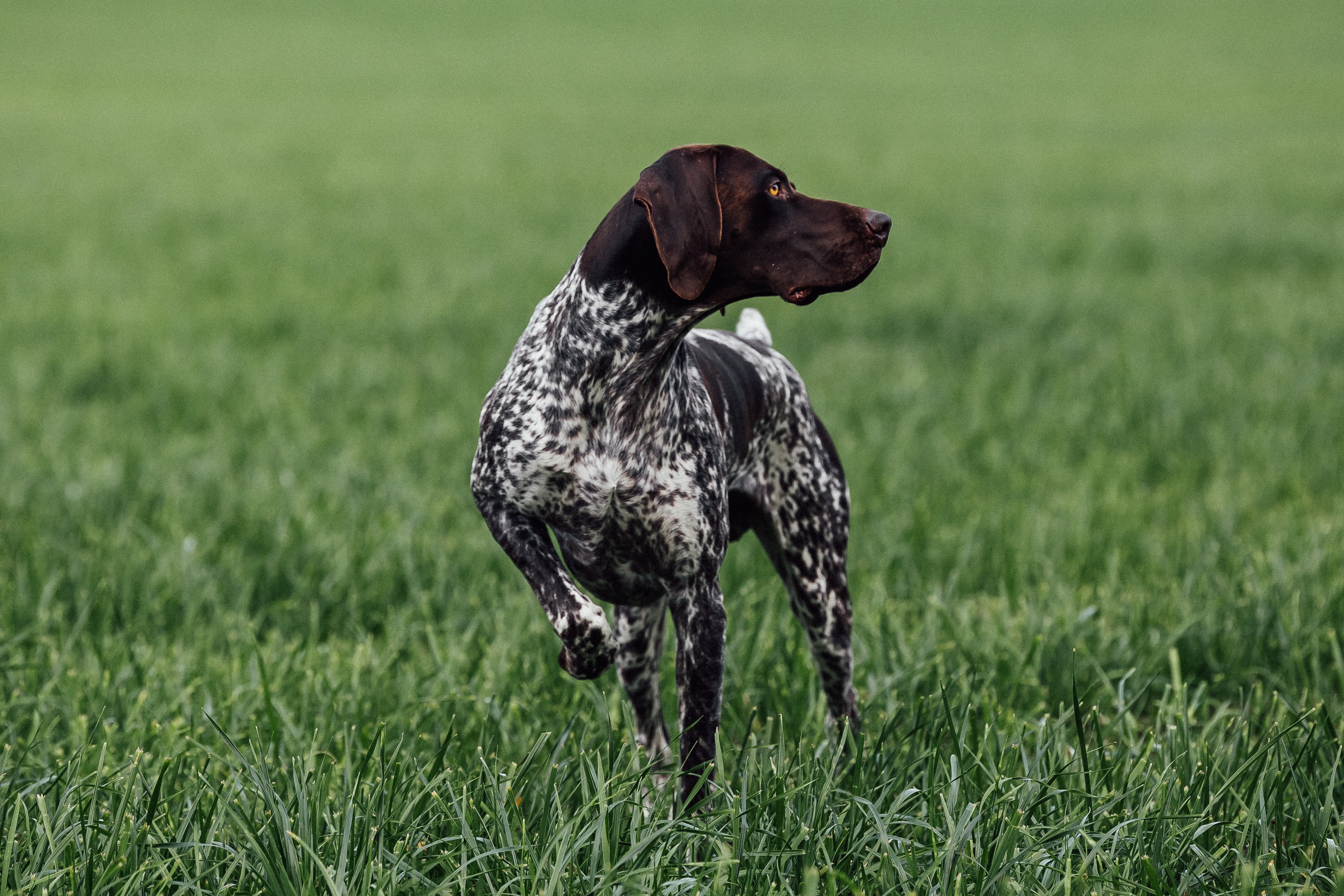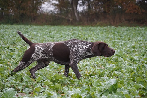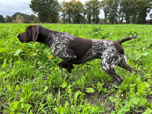 Im Feld zeigt sich Meester feinnasig (4H), sucht planmäßig und führerbezogen, zieht weit an, taxiert und steht Haar- und Federwild sicher vor.
