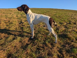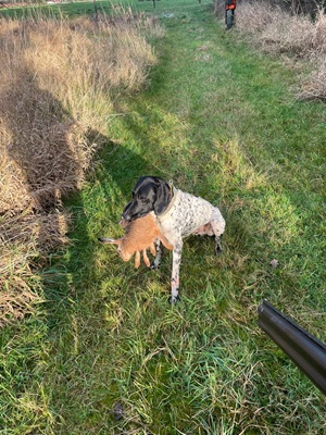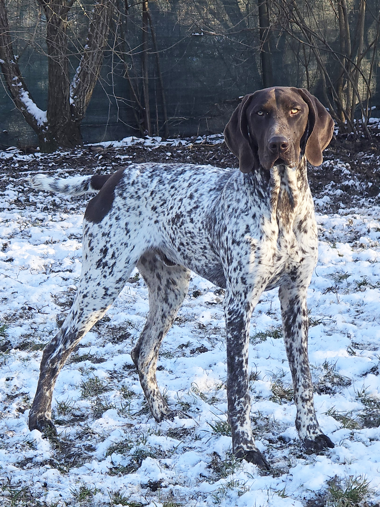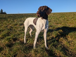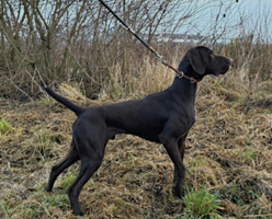 Beschreibung: Leistungsstarker Rüde (68 cm) im ständigen Jagdeinsatz. Alex überzeugt durch festes Vorstehen, passioniertes Stöbern, Wasserfreudigkeit und sehr starken Apportierwillen (aktuell Jagdkönig bei der letzten Jagd). Wesen: Absolut führerbezogen und treu, offen gegenüber anderen Hunden und sehr familienfreundlich. Abgabe an Jäger, da der Hund jagdlich geführt werden will.