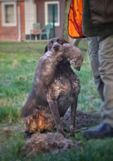 Im Jagdbetrieb ist er ein ruhiger, verlässlicher und verträglicher Jagdgefährte, der viel Freude bereitet – ebenso im Alltag. Er ist Haus gewohnt und fährt gerne Auto.