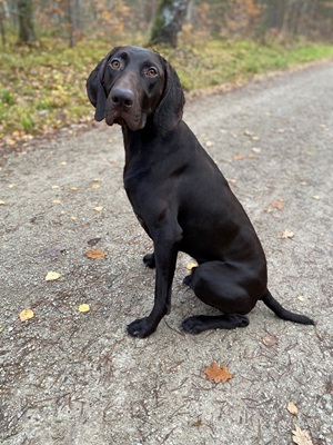 Mit Uschi vom Sauwerder sucht eine im Wesen herzliche, zugetane und noch nicht ganz elf Monate junge Hündin ein neues Zuhause. Gesundheitliche Herausforderungen innerhalb Uschis Familie erfordern diesen nicht leichten Schritt. Uschi hat einen Rückbiss, der jagdlich nicht zutage tritt.