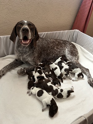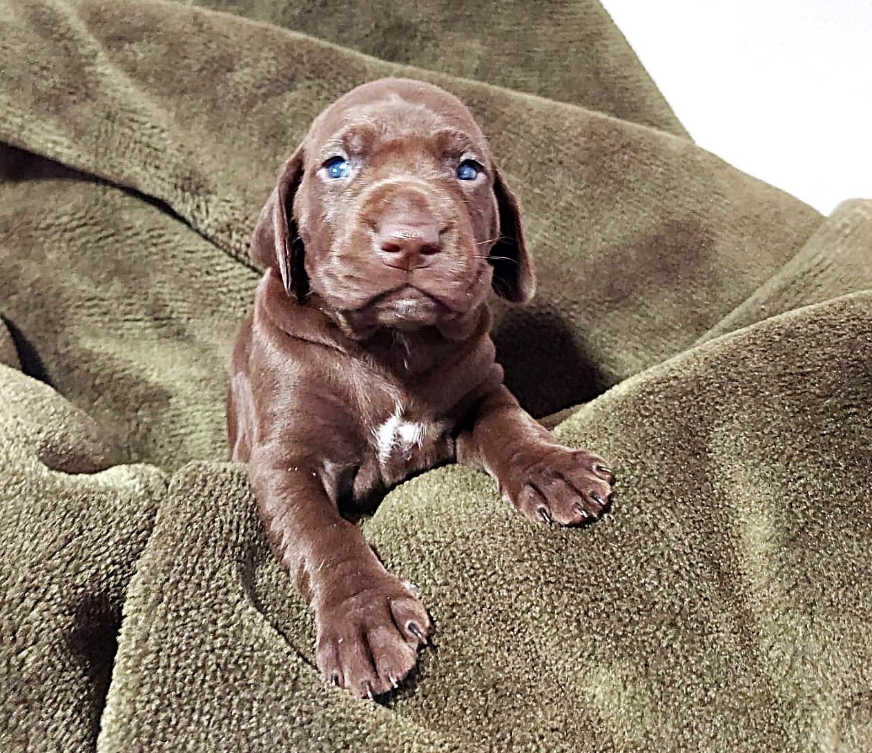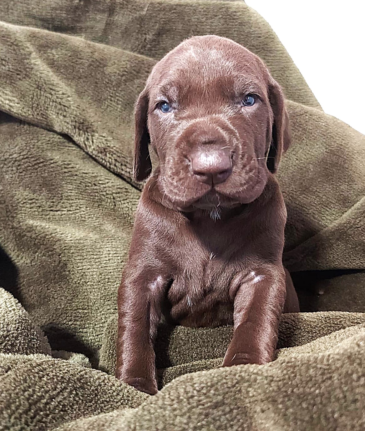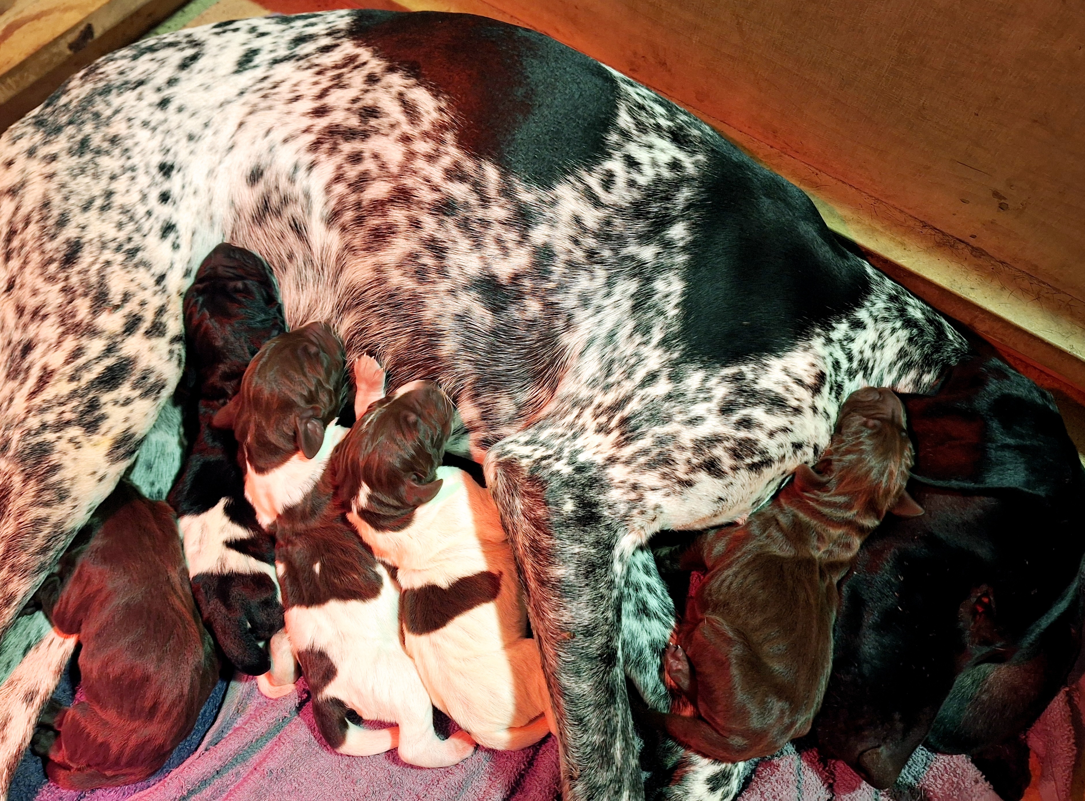 Am 20.07.2025 ist unser A-Wurf gefallen. 1 braunschimmel Rüden sucht noch ein jagdliches Zuhause