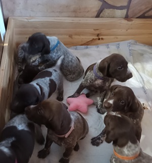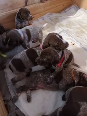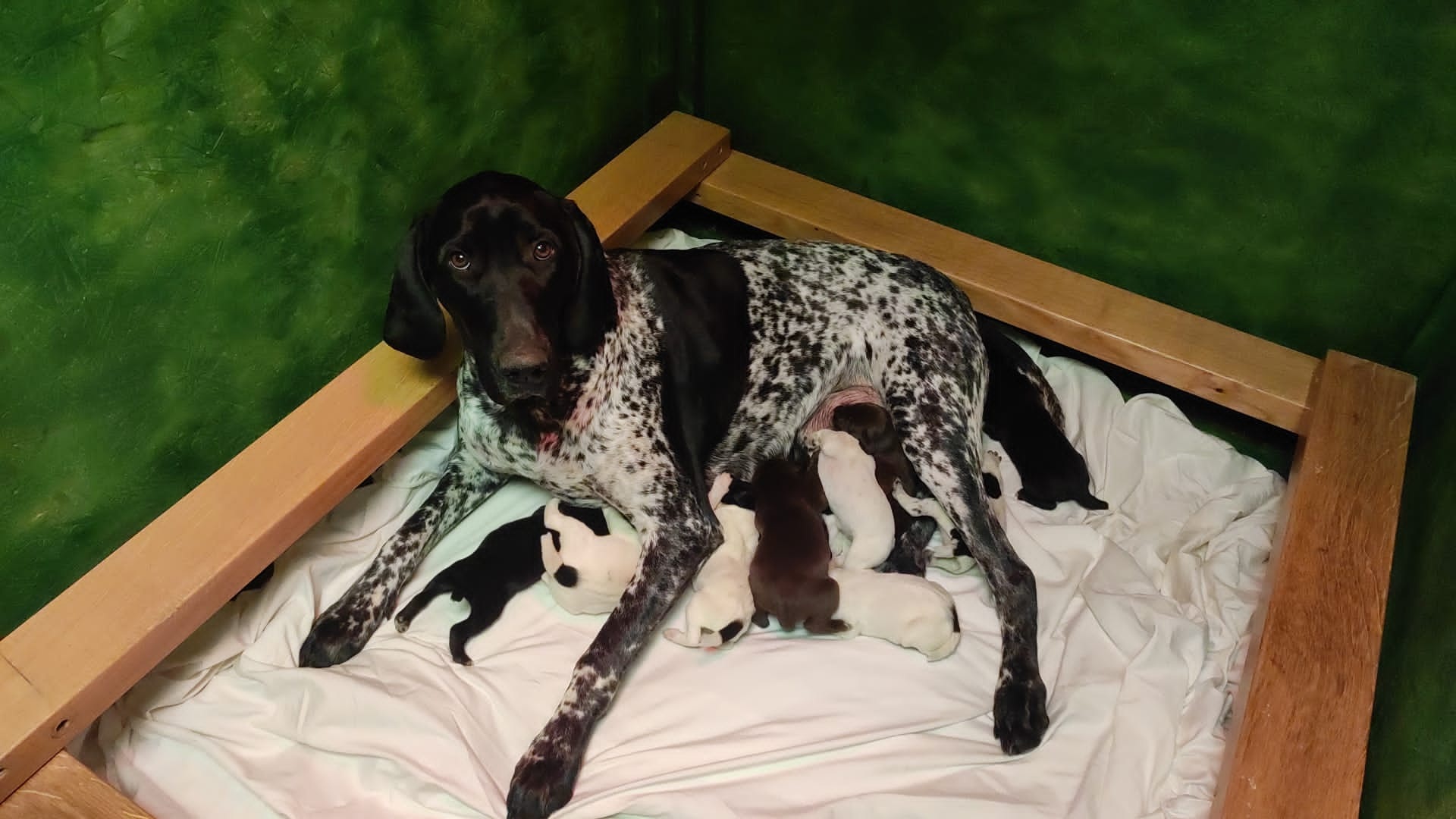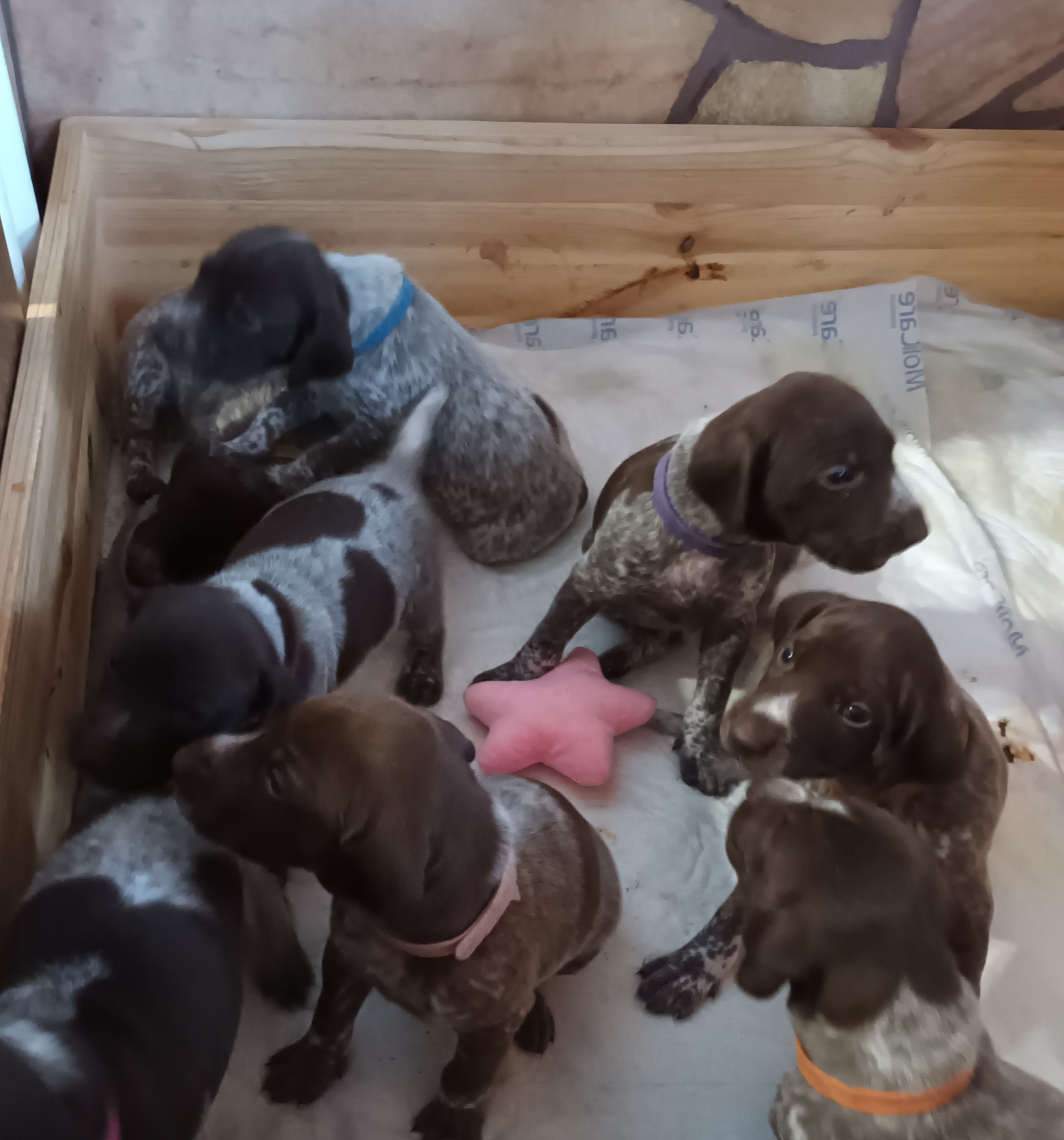Am 07.November 2025 ist unser D-Wurf mit 7/6 braunschimmel Welpen gefallen. Wir freuen uns sehr über diesen Verpaarung, da beide Elterntiere extrem ruhige, formschöne, sozialverträgliche und wesensfeste Hunde sind. Sie verfügen über sehr gute Anlagen im Feld, Wasser und Wald und besitzen einen ausgeprägten Jagdinstinkt.