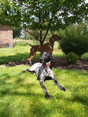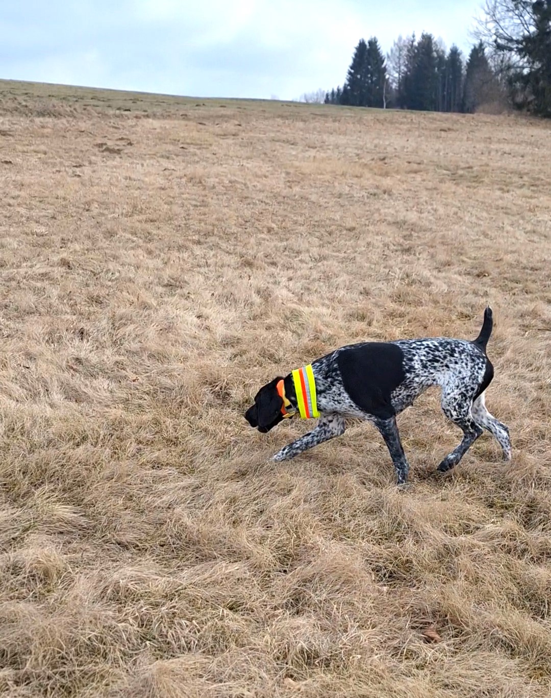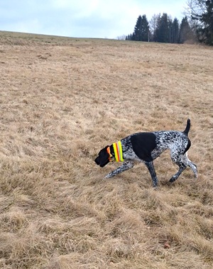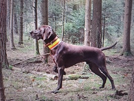 Die Mutter Hummel vom Goldberg ZB.Nr. 0628/22, Brschl.m.Pln., gew. am: 12.03.2022, D1, S2 HD A2, ED + OCD frei, Größe 59 cm. Formwert: V ist eine ruhige, ausgeglichene Hündin, die als Vollgebrauchshund geführt wird. Mit ihrer Gelassenheit, ihrem großen Jagdverstand und ihrer Verlässlichkeit begeistert sie sowohl im Jagdbetrieb als auch im Alltag.