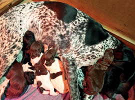 Beide Eltern sind ruhige und führige Familienhunde, die im ständigen Jagdeinsatz stehen.