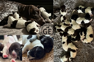 Die Welpen wachsen bei uns im engen Familienanschluss auf, sind bestens sozialisiert und haben bereits Bekanntschaft mit den gängigen Wildarten gemacht. Sie suchen ein jagdliches Zuhause, in dem ihre Anlagen gefördert und gefordert werden.