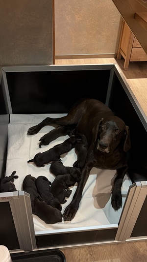 Am 22. Januar 2026 ist unser K2-Wurf gefallen, 5 Rüden (3 Brschl, 2 Schwschl.), 6 Hündinnen (4 Schwschl, 2 Brschl.)