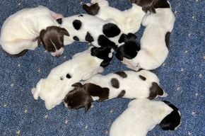 Am 30. Juli 2025 fiel unser F Wurf. Es sind 6/3 brschl. Welpen mit tiefdunkelbraunem Pigment.