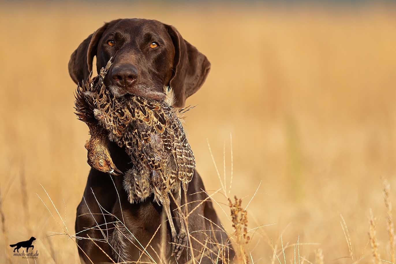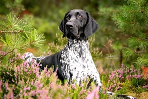Nach Bandit vom Rimpaustein, Zb.Nr. 0585/23, Gew. am 30.03.2023, Brschl.m.Pln., D1 (4h Vorstehen), S1 (4h Vorstehen), VGP1 (349 Pkt. Totverbeller), sichtlaut, Saujager, BTR, HN, HD A2, OCD-frei, Fw. JK SG